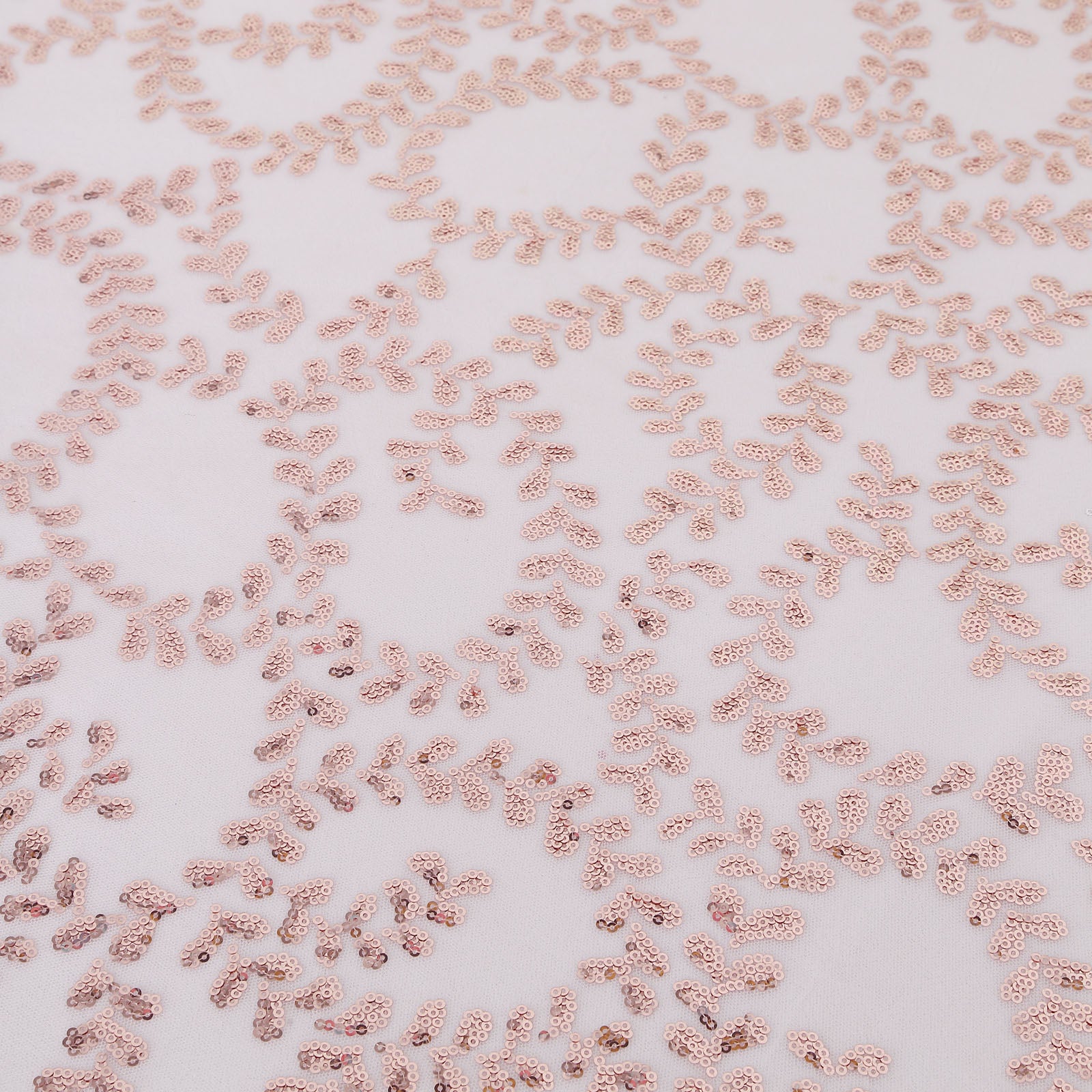 This Rose Gold Sequin Leaf Embroidered Table Overlay is designed for versatility. Its square shape makes it ideal for various table sizes and shapes. Whether you are dressing up a round table or a rectangular banquet setup, this overlay fits perfectly.