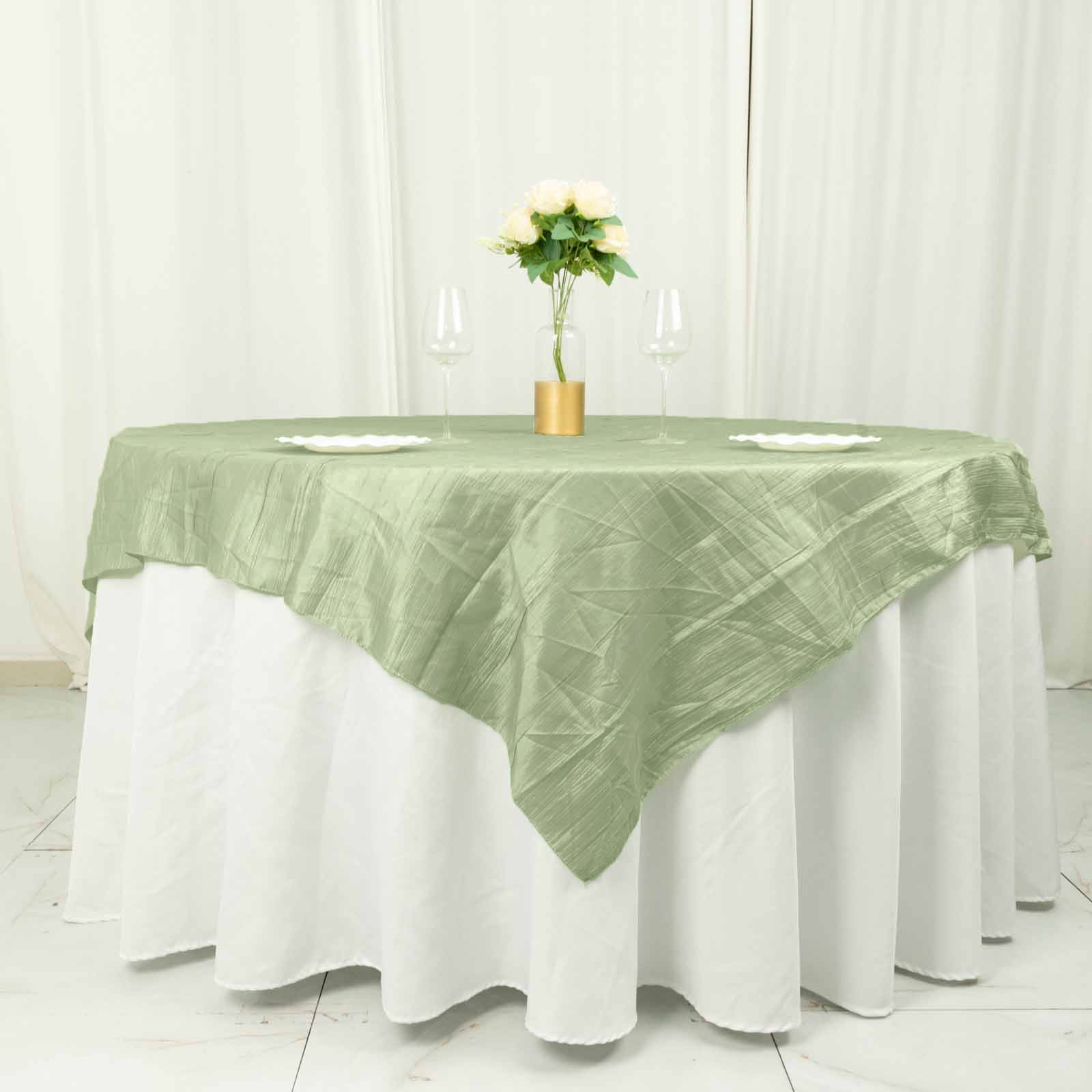 72"x72" Sage Green Accordion Crinkle Taffeta Table Overlay, Square Tablecloth Topper