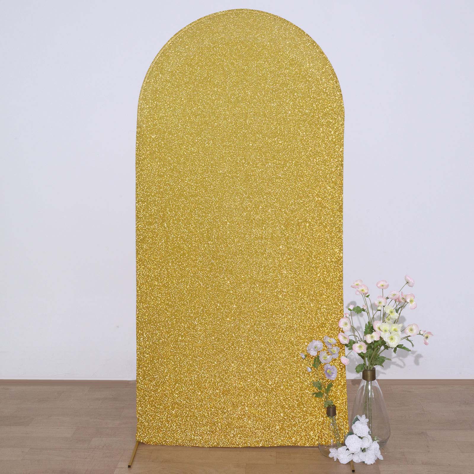 7ft Gold Shimmer Tinsel Spandex Wedding Arch Cover For Fitted Round Top Chiara Backdrop Stand