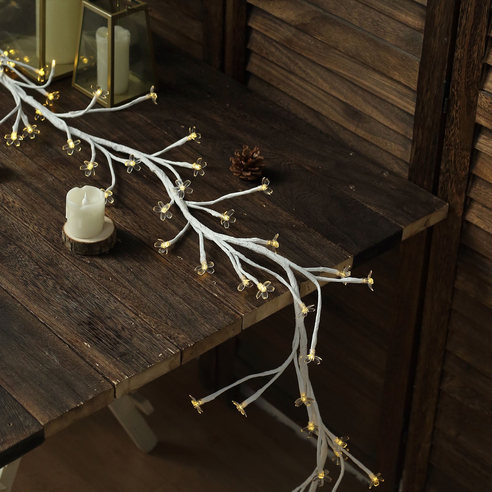 8.5ft Warm White Cherry Blossom Decorative LED Fairy String Lights, Battery-Operated Flower Party Lights