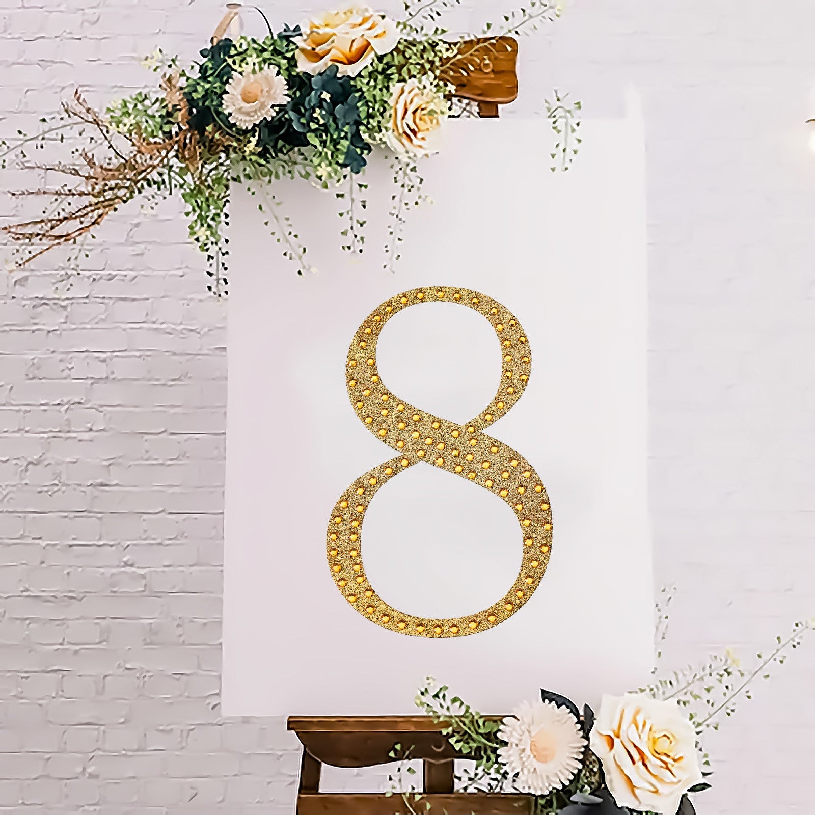 Durability is a key feature of our 8" Gold Decorative Rhinestone Number Stickers. Made from high-quality materials, these stickers are designed to withstand the demands of any event. Their sturdy construction ensures they will stay in place, even in high-traffic areas.