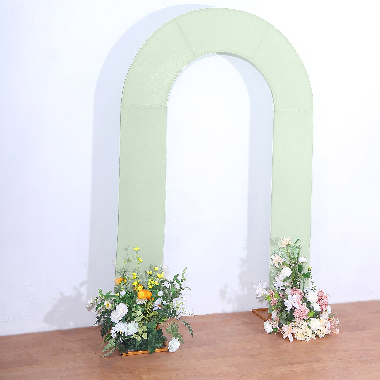 8ft Sage Green Spandex Fitted Open Arch Wedding Arch Cover, Double-Sided U-Shaped Backdrop Slipcover