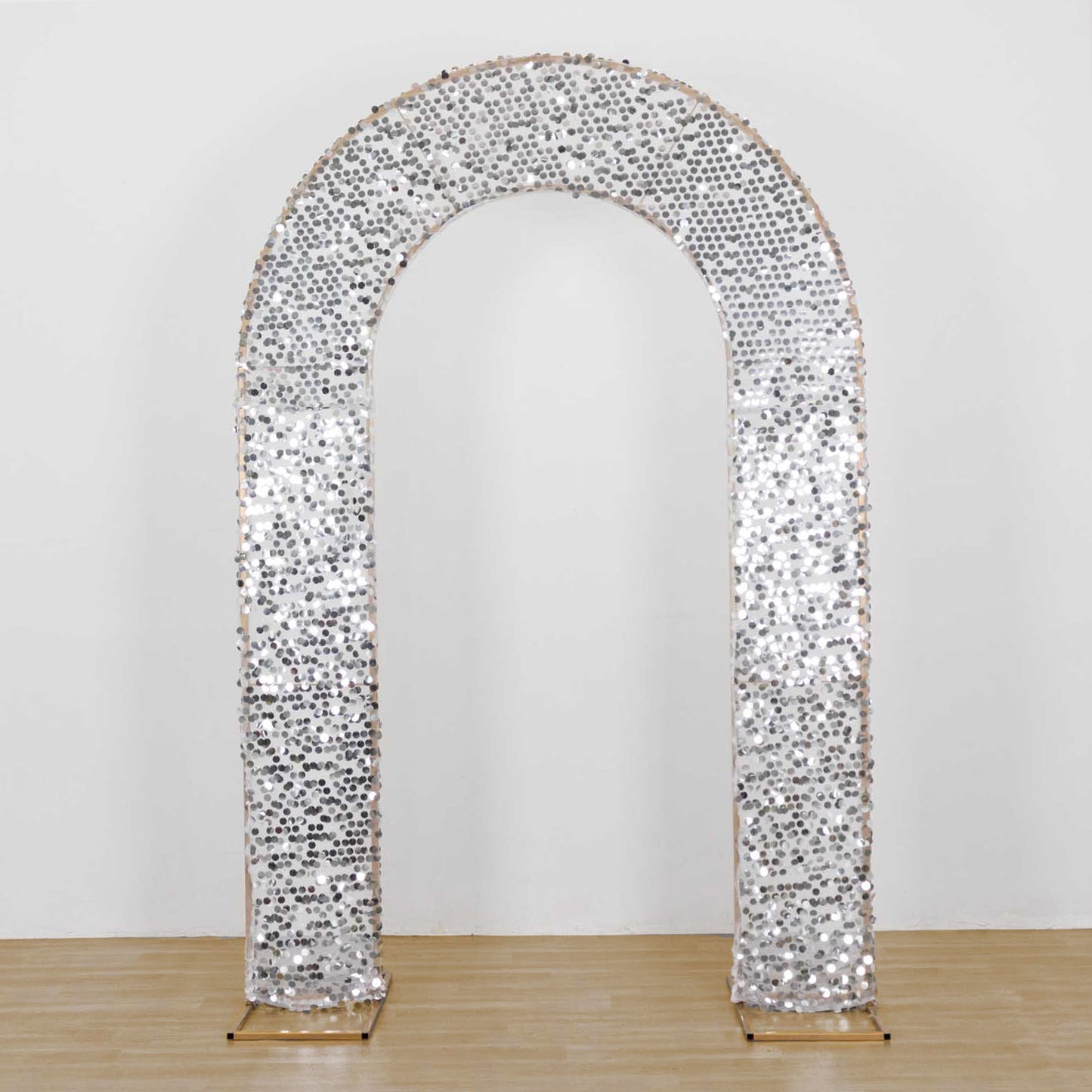 8ft Silver Big Payette Sequin Open Arch Wedding Arch Cover, Sparkly U-Shaped Fitted Backdrop Slipcover