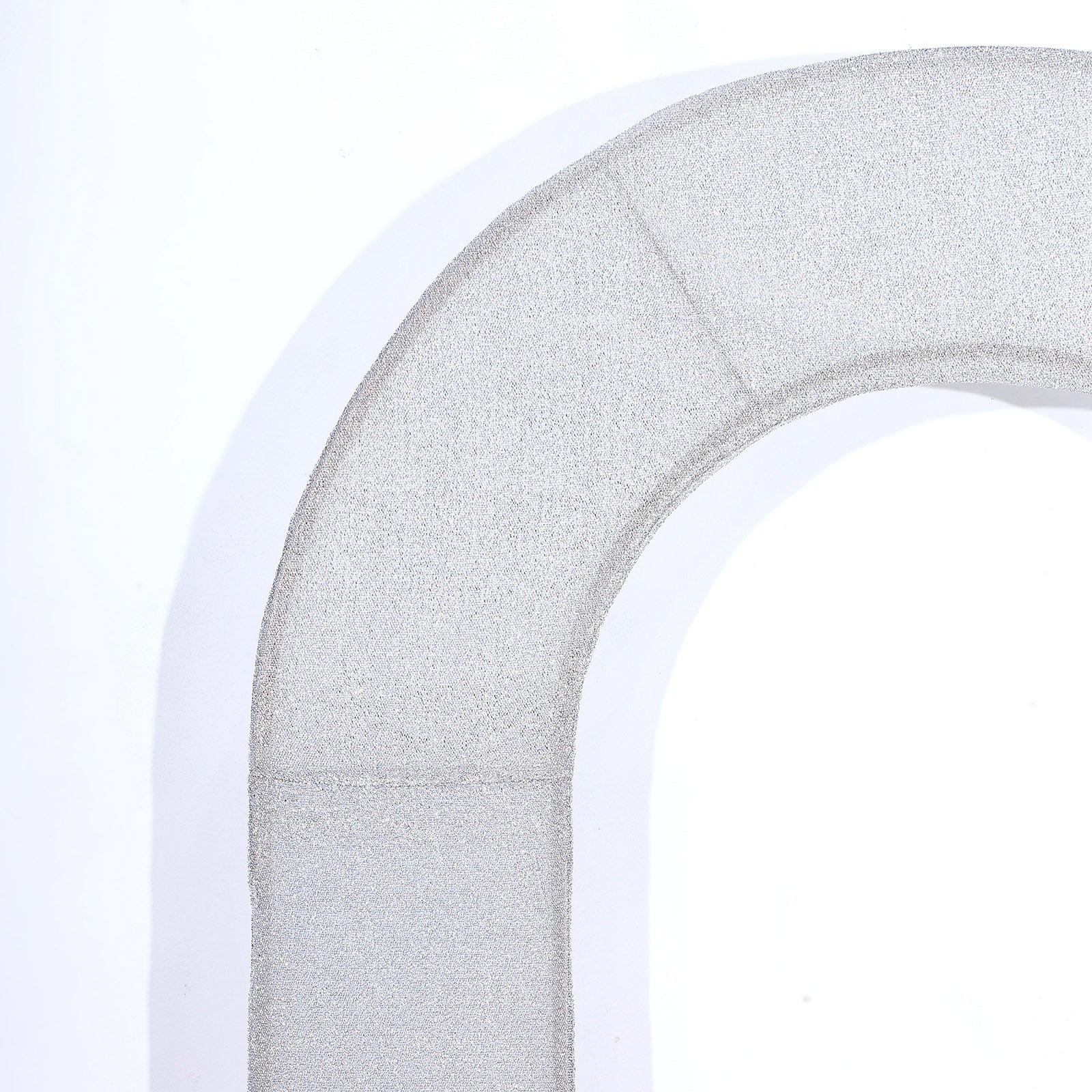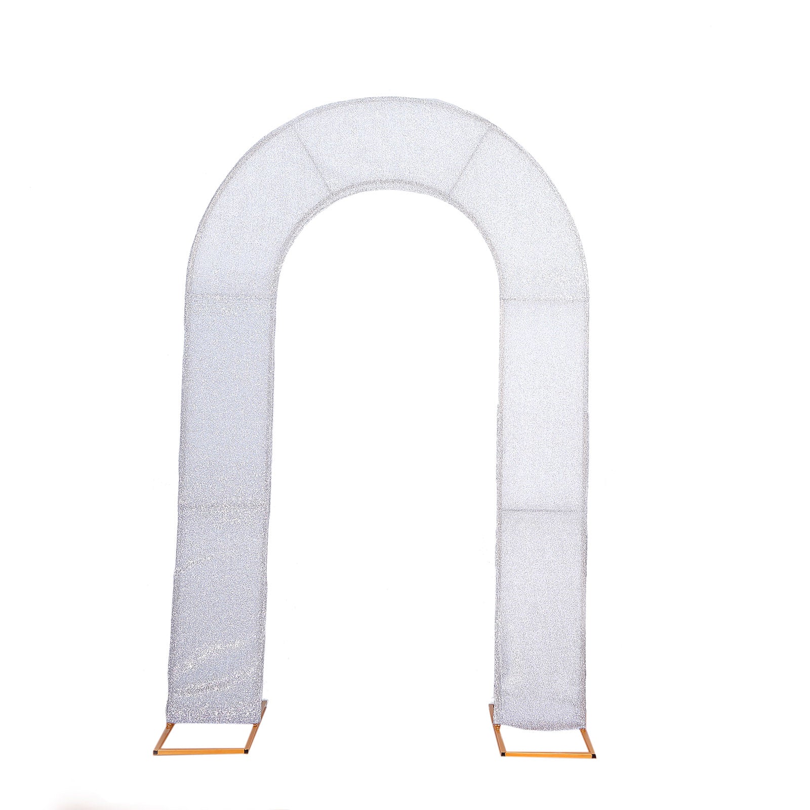 8ft Silver Spandex Fitted U-Shaped Wedding Arch Cover With Shimmer Tinsel Finish, Double-Sided Open Arch Backdrop Slipcover
