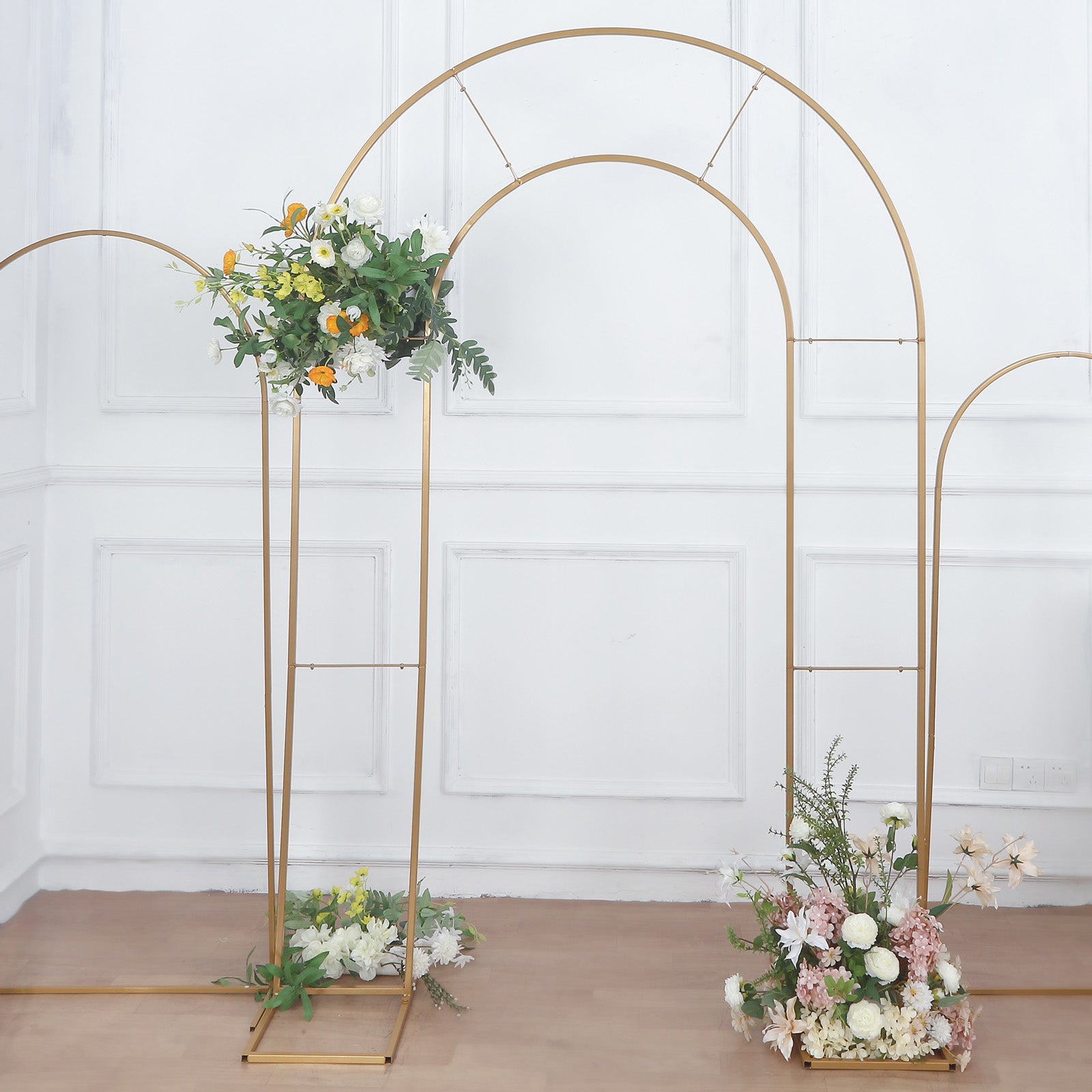 8ft Tall Gold Metal Round Top Double Arch Wedding Arbor Ceremony Stand, Flower Balloon Frame Backdrop Stand