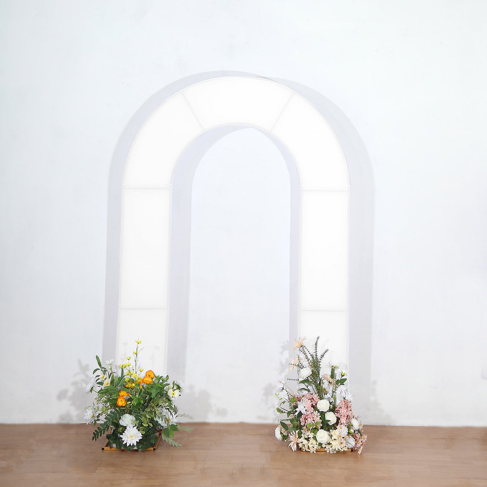 8ft White Spandex Fitted Open Arch Wedding Arch Cover, Double-Sided U-Shaped Backdrop Slipcover