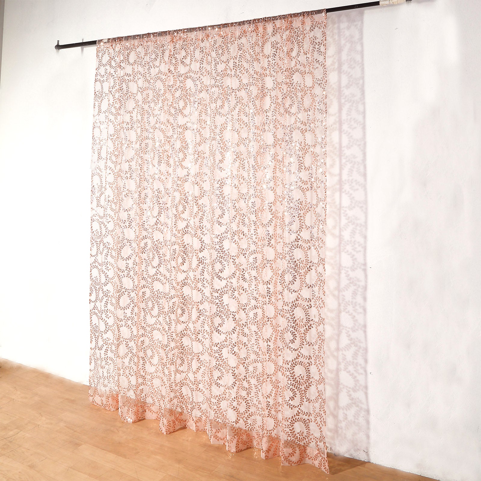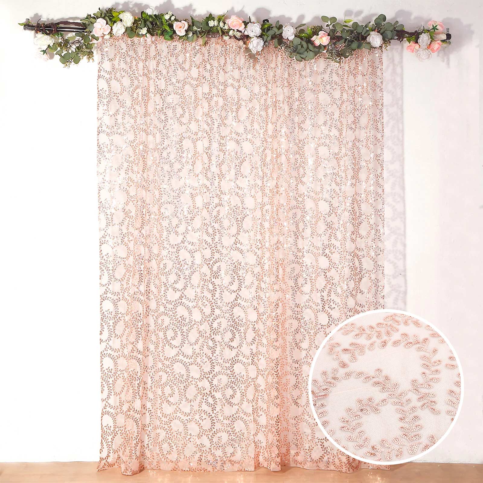 8ftx8ft Rose Gold Embroider Sequin Event Curtain Drapes, Sparkly Sheer Backdrop Event Panel With Embroidery Leaf