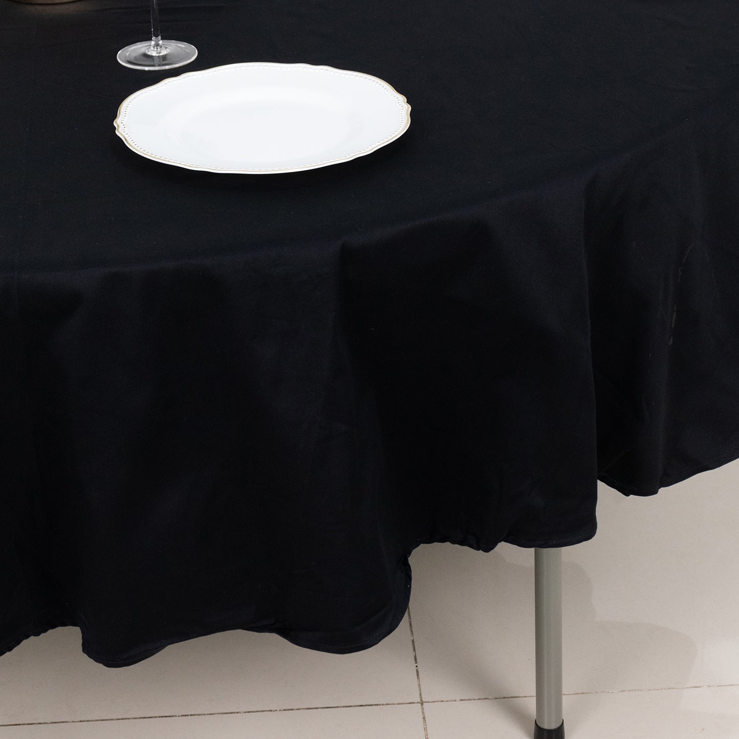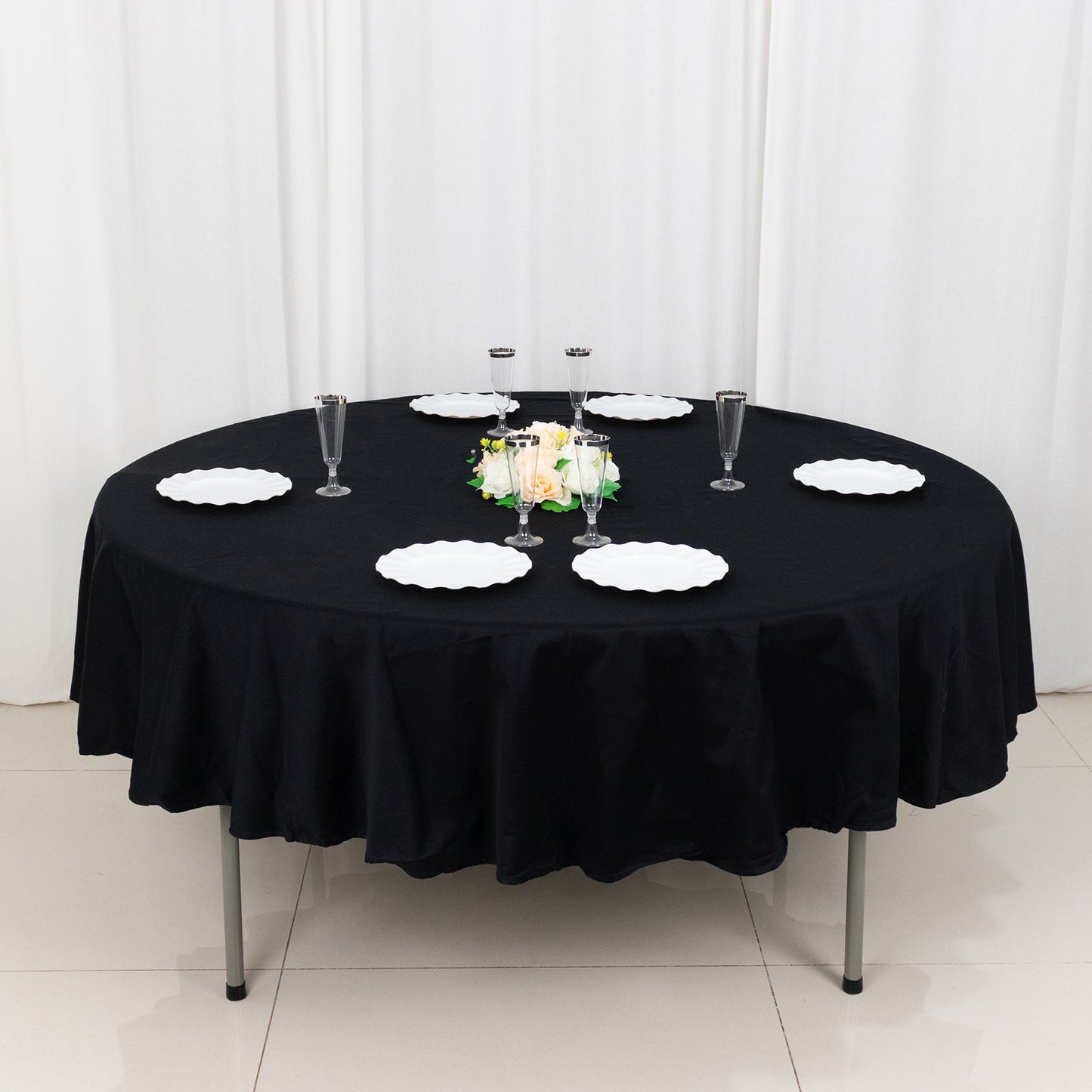 Cotton tablecloths provide a natural and elegant look. They enhance the overall appearance of your tables. This 90" Black Round Cotton Linen Tablecloth is a perfect example.