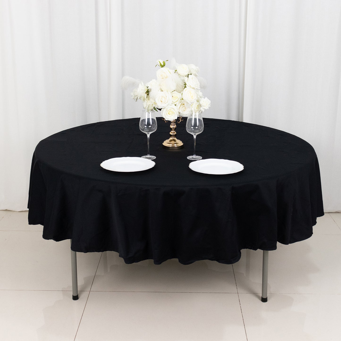 The 90" Black Round Cotton Linen Tablecloth offers endless styling possibilities. Its large size fits most round tables flawlessly. The deep black color serves as a versatile canvas for your creativity.