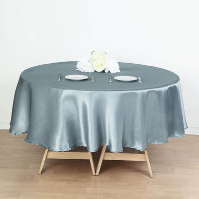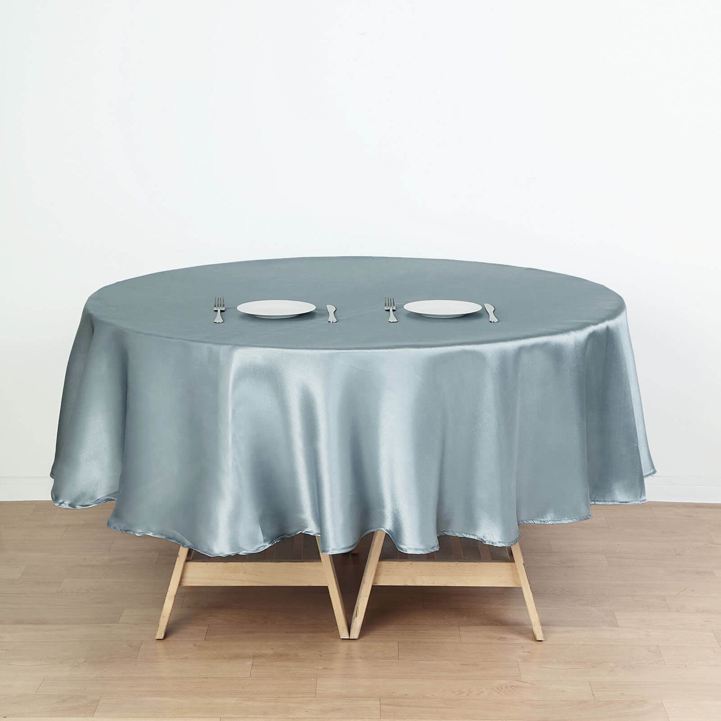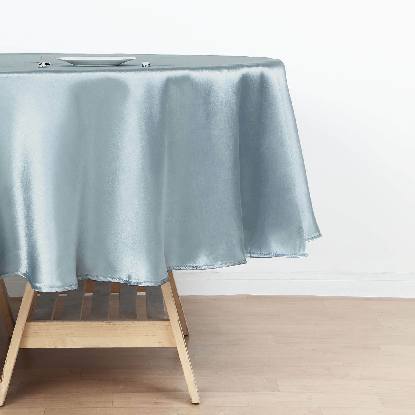 90" Dusty Blue Seamless Satin Round Tablecloth