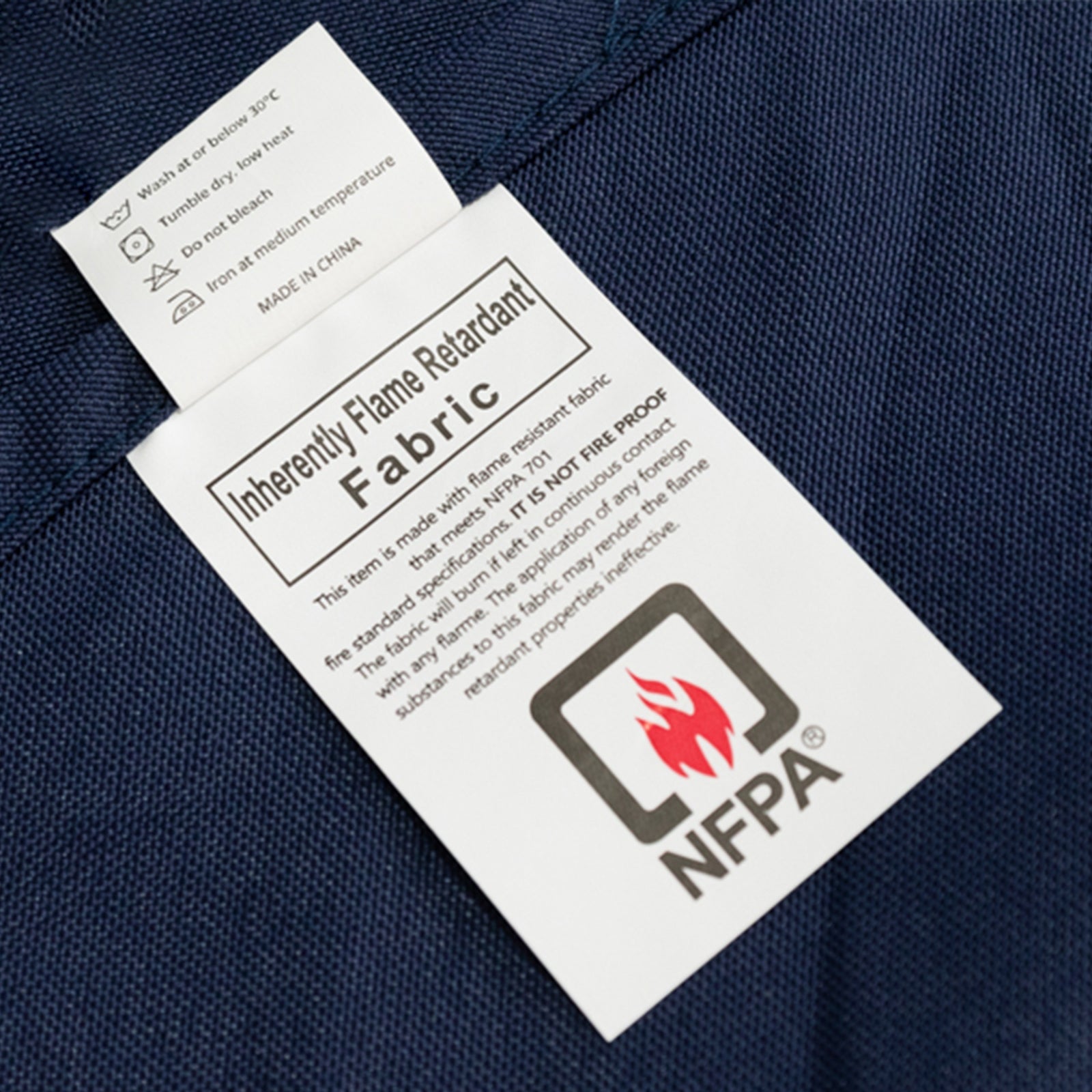 Inherently Flame Retardant (I.F.R): The highest level of fire protection for linens is the Inherently Fire Retardant. Our linens in this fabric line are tested by the accredited National Fire Protection Association (N.F.P.A.) 701 test, and certified as being fire retardant. Product came with IFR tags, The certificate and results will be Emailed to all customers that purchase this fabric line.