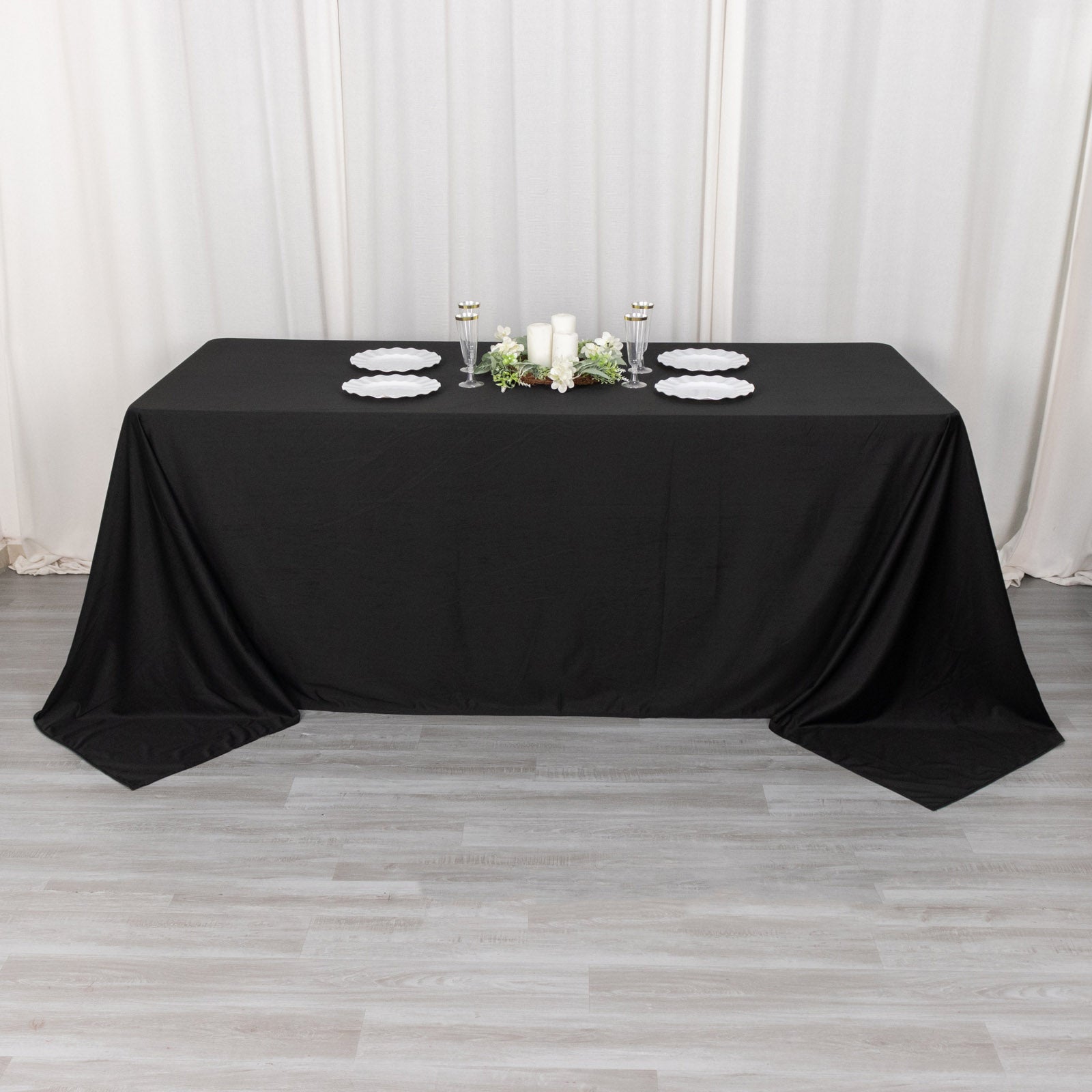 90"x132" Black Scuba Wrinkle Free Rectangular Tablecloth, Seamless Scuba Polyester Tablecloth