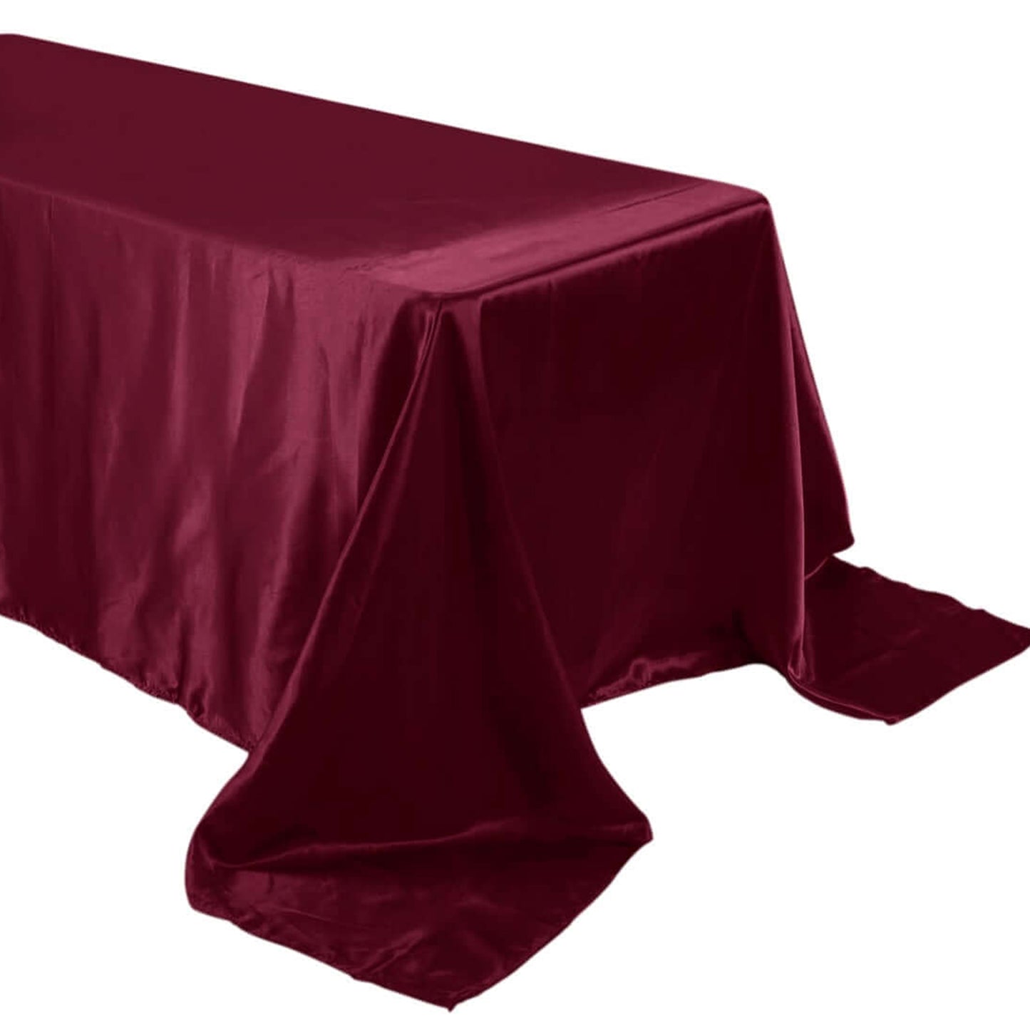 90"x132" Burgundy Satin Seamless Rectangular Tablecloth