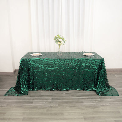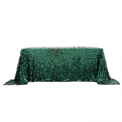 90"x132" Hunter Emerald Green Seamless Big Payette Sequin Rectangle Tablecloth Collection