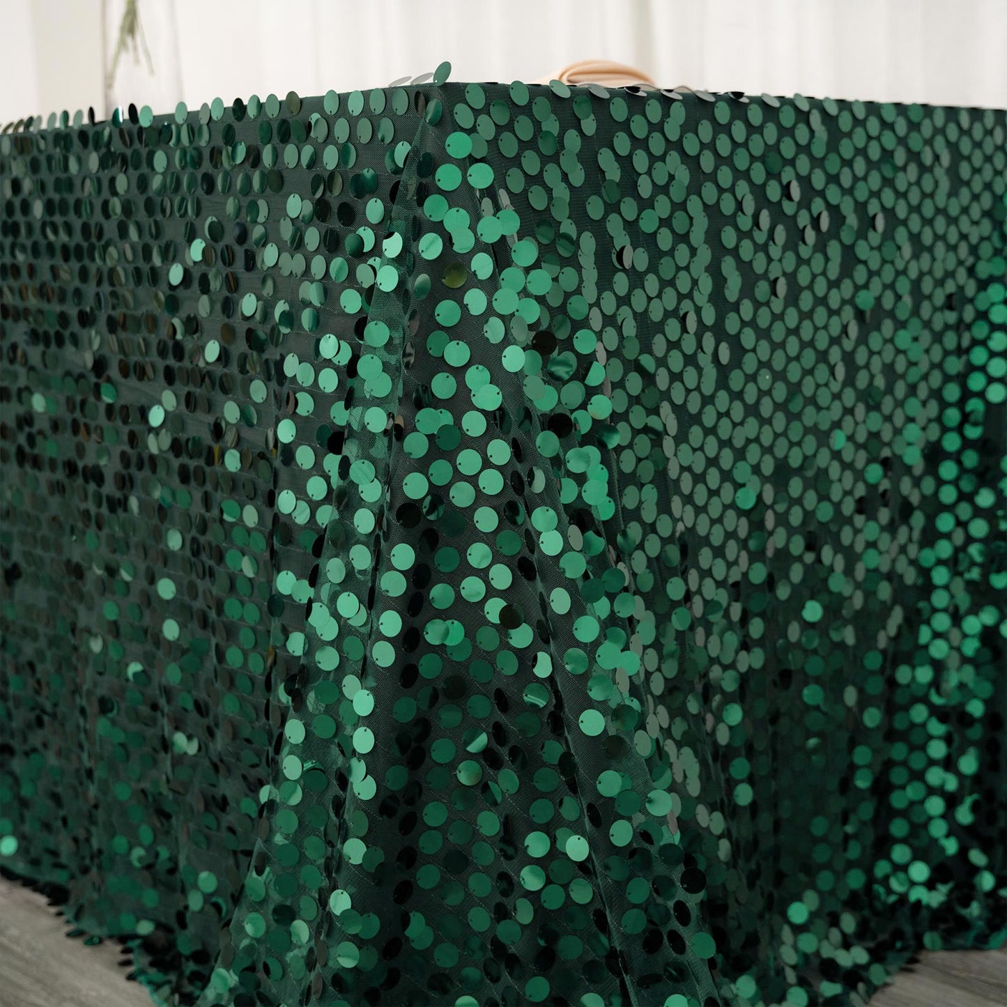 In the Hunter Emerald Green Tablecloth, these sequins create a shimmering effect. They catch the light beautifully, adding depth and glamour. This feature makes the tablecloth perfect for upscale events.