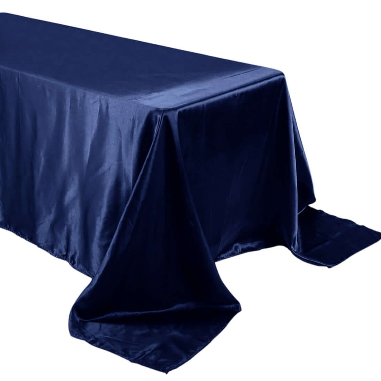 90"x132" Navy Blue Satin Seamless Rectangular Tablecloth