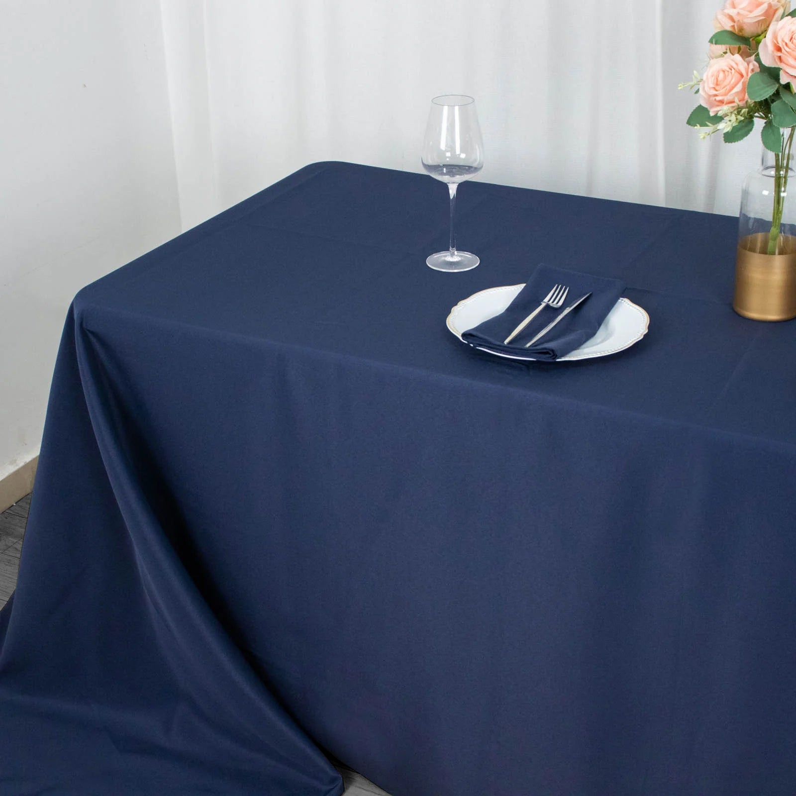 90"x132" Navy Blue Seamless Premium Polyester Rectangular Tablecloth - 220GSM