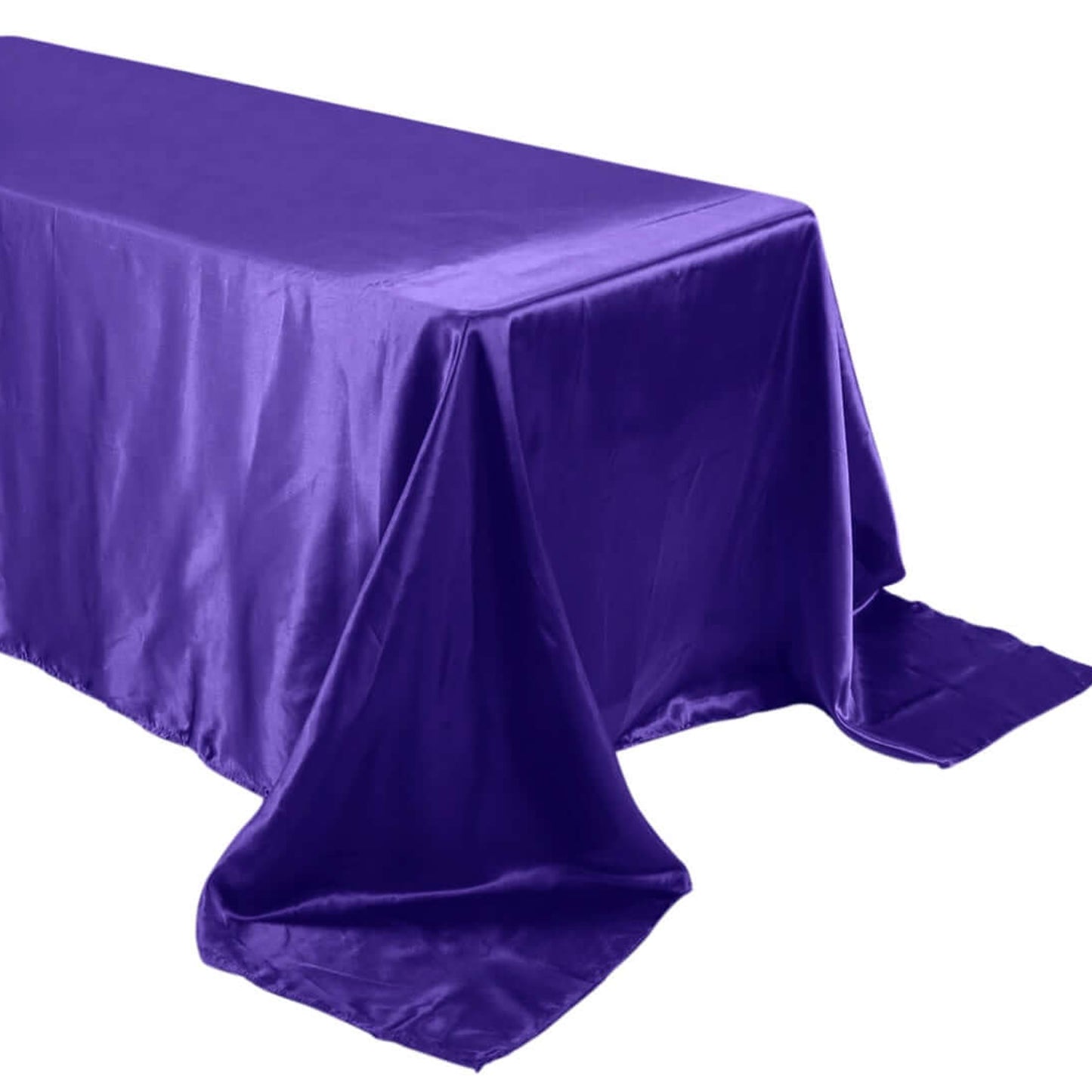 90"x132" Purple Satin Seamless Rectangular Tablecloth