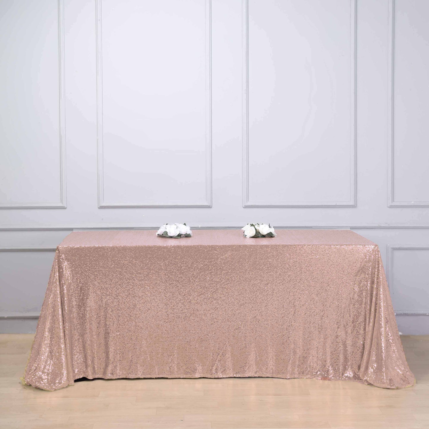 90"x132" Rose Gold Seamless Sequin Rectangle Tablecloth