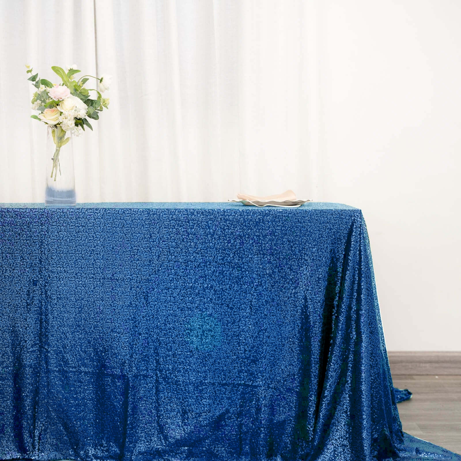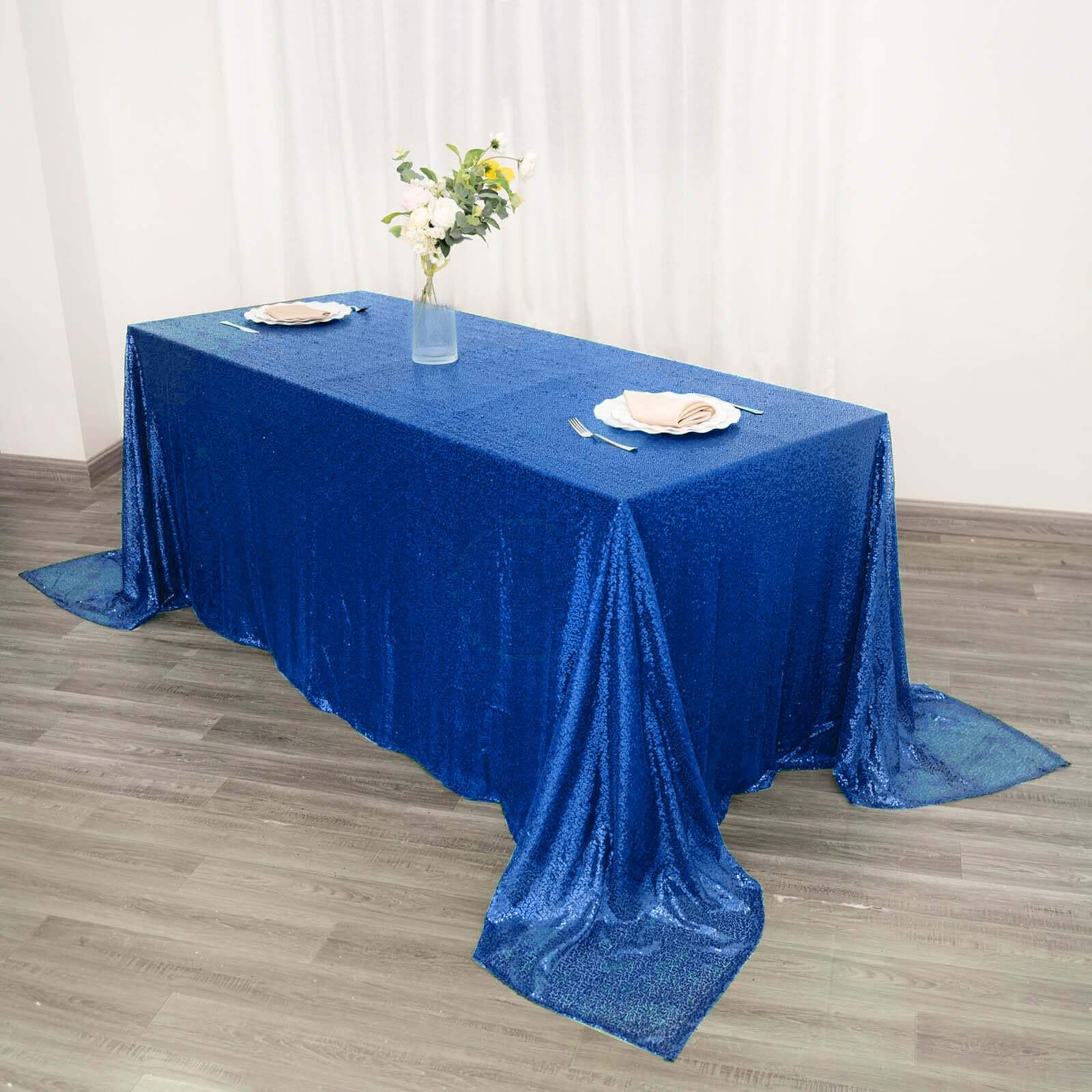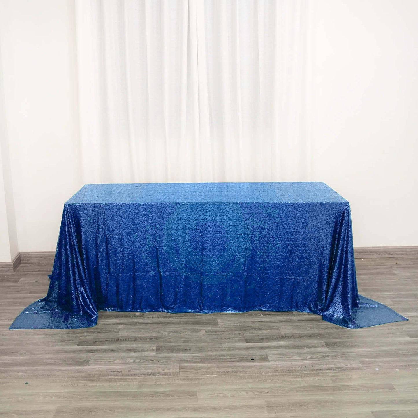 90"x132" Royal Blue Seamless Sequin Rectangle Tablecloth