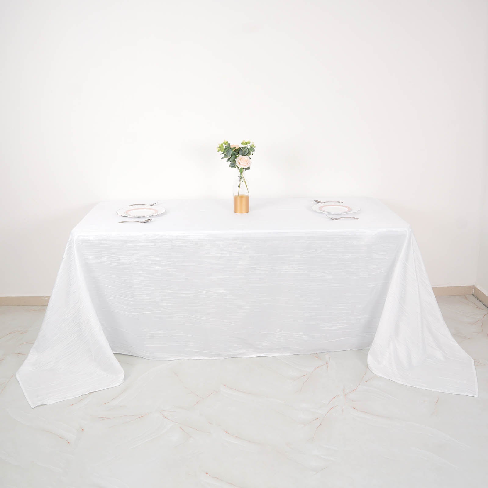 90"x132" White Accordion Crinkle Taffeta Seamless Rectangular Tablecloth