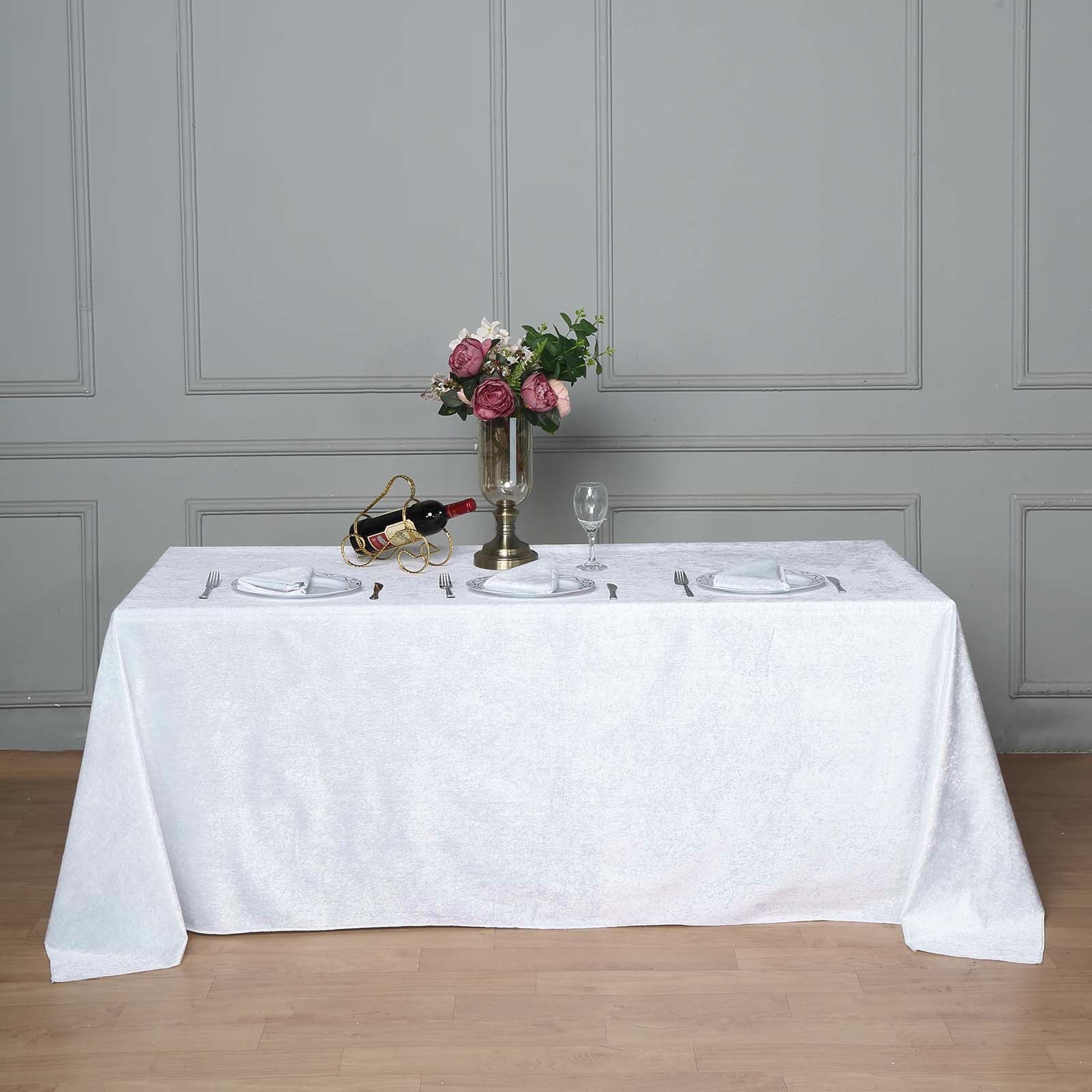 A white velvet tablecloth can be the foundation for countless décor ideas. Start with a simple centerpiece, like a floral arrangement, to bring life to your table. The softness of the velvet will enhance the beauty of the flowers, creating a stunning focal point.