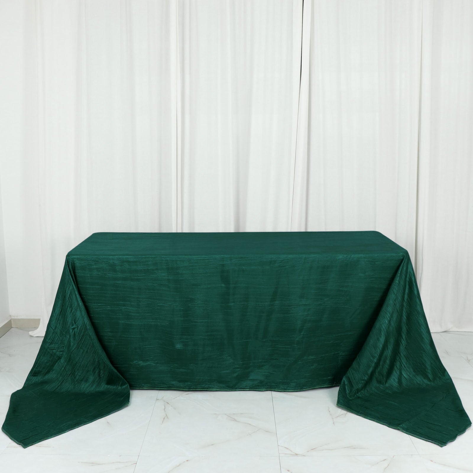 90"x156" Hunter Emerald Green Accordion Crinkle Taffeta Seamless Rectangular Tablecloth