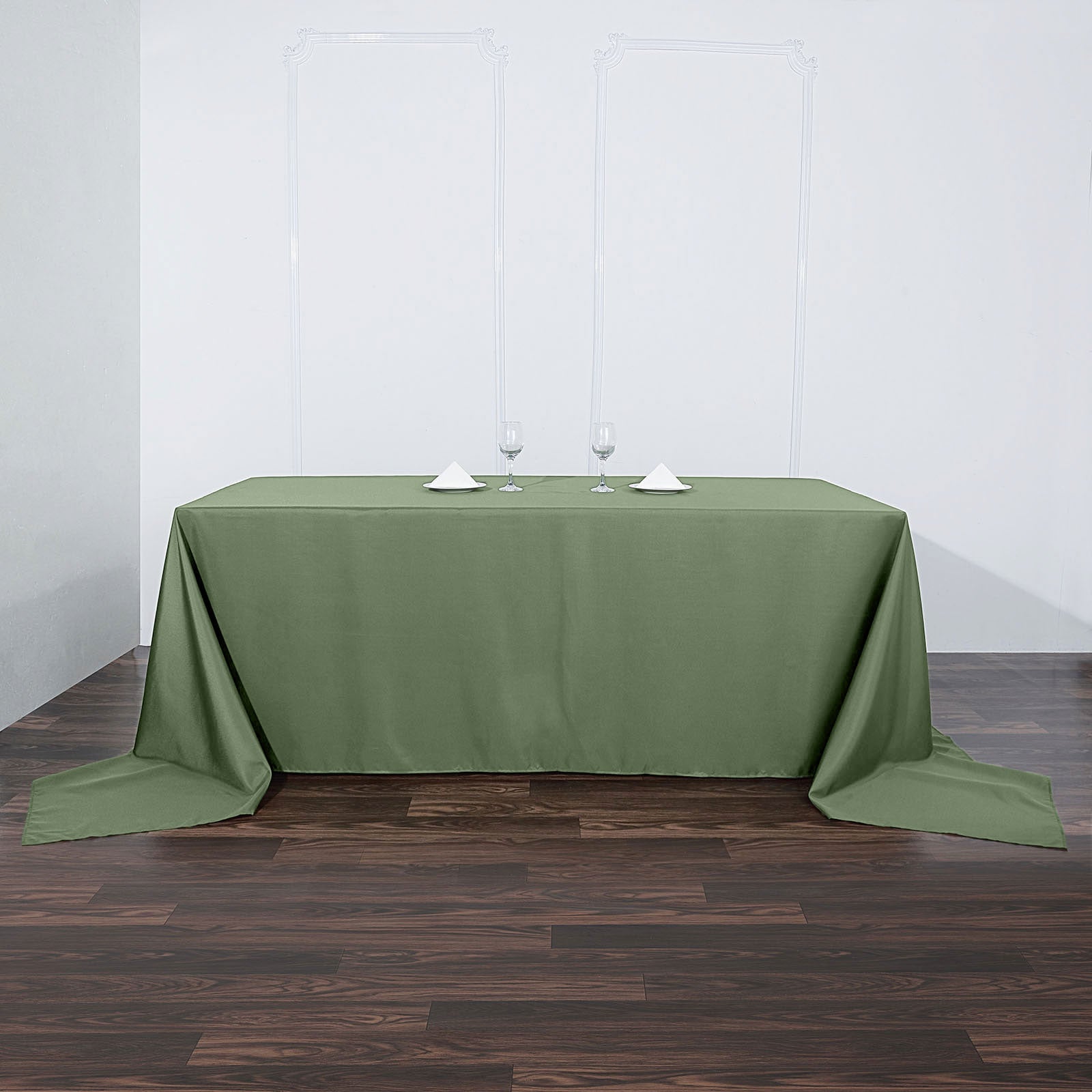90"x156" Olive Green Seamless Polyester Rectangular Tablecloth