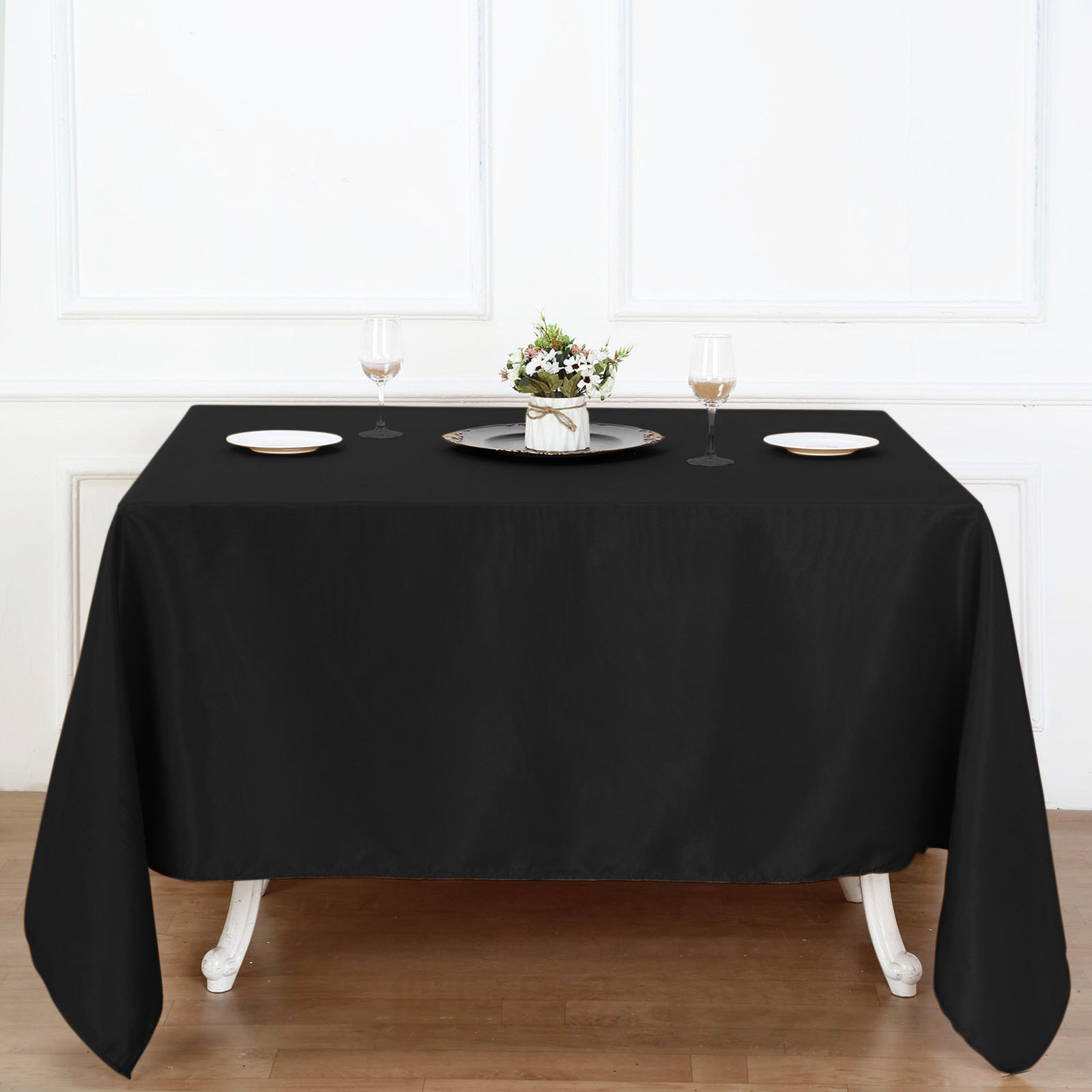 Transform your event with our 90"x90" black seamless polyester tablecloths. This tablecloth adds instant elegance to any occasion. Its rich black hue offers a timeless appeal that fits perfectly with various themes and color palettes.