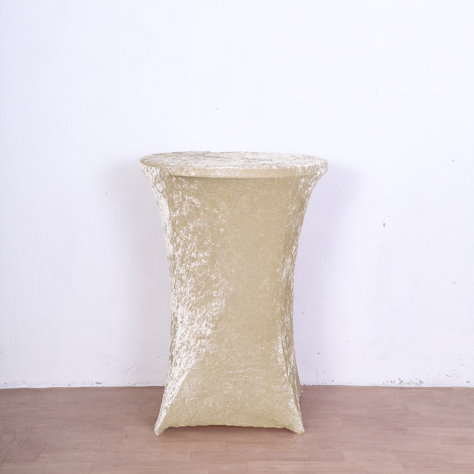 Crushed Velvet Spandex 30" Round Cocktail Table Cover Beige Smooth Highboy Tablecloth