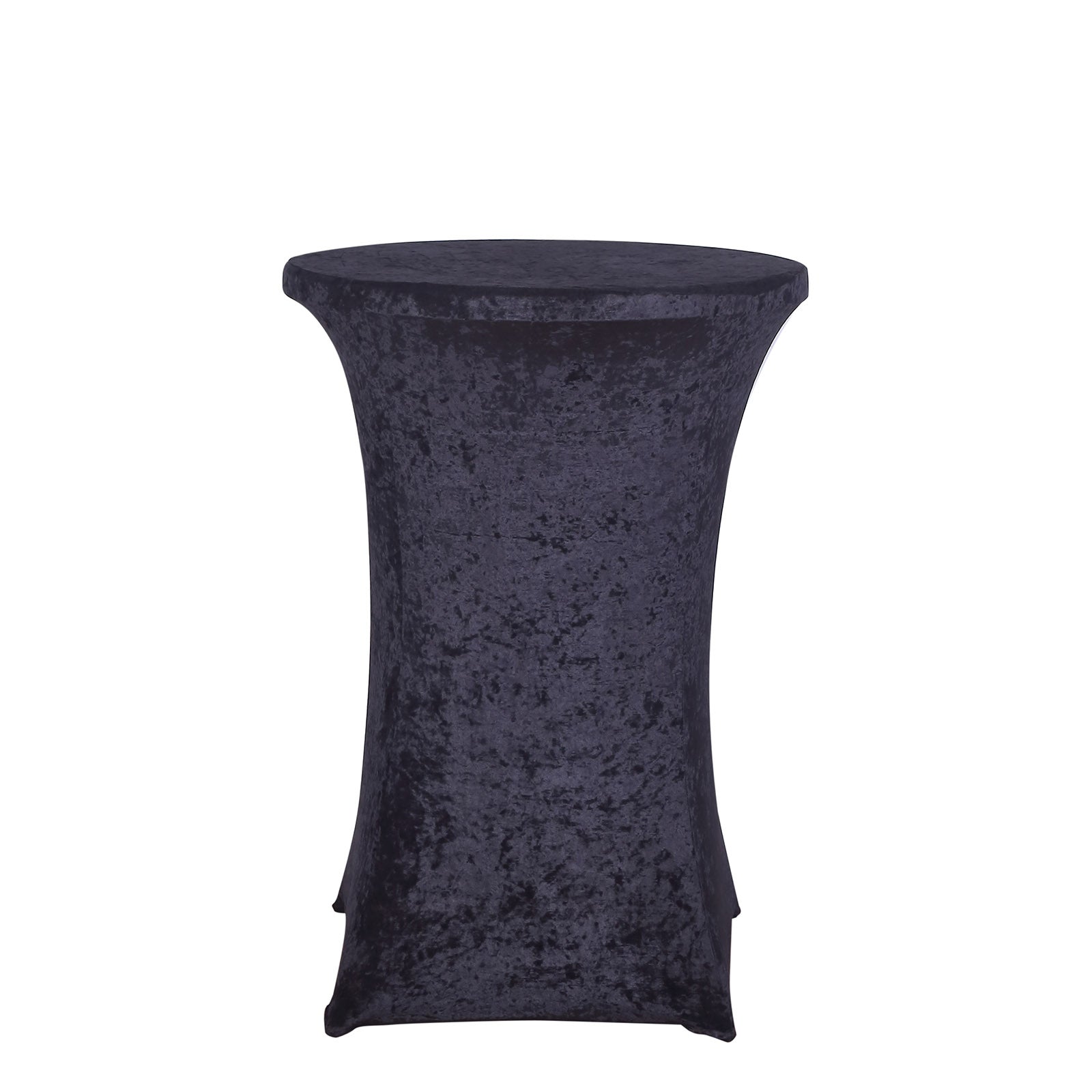 Durability is a key feature of our Black Crushed Velvet Spandex Fitted Round Highboy Cocktail Table Cover. Made from premium materials, it withstands the rigors of event use. This cover is designed to last, making it a reliable choice for event planners.