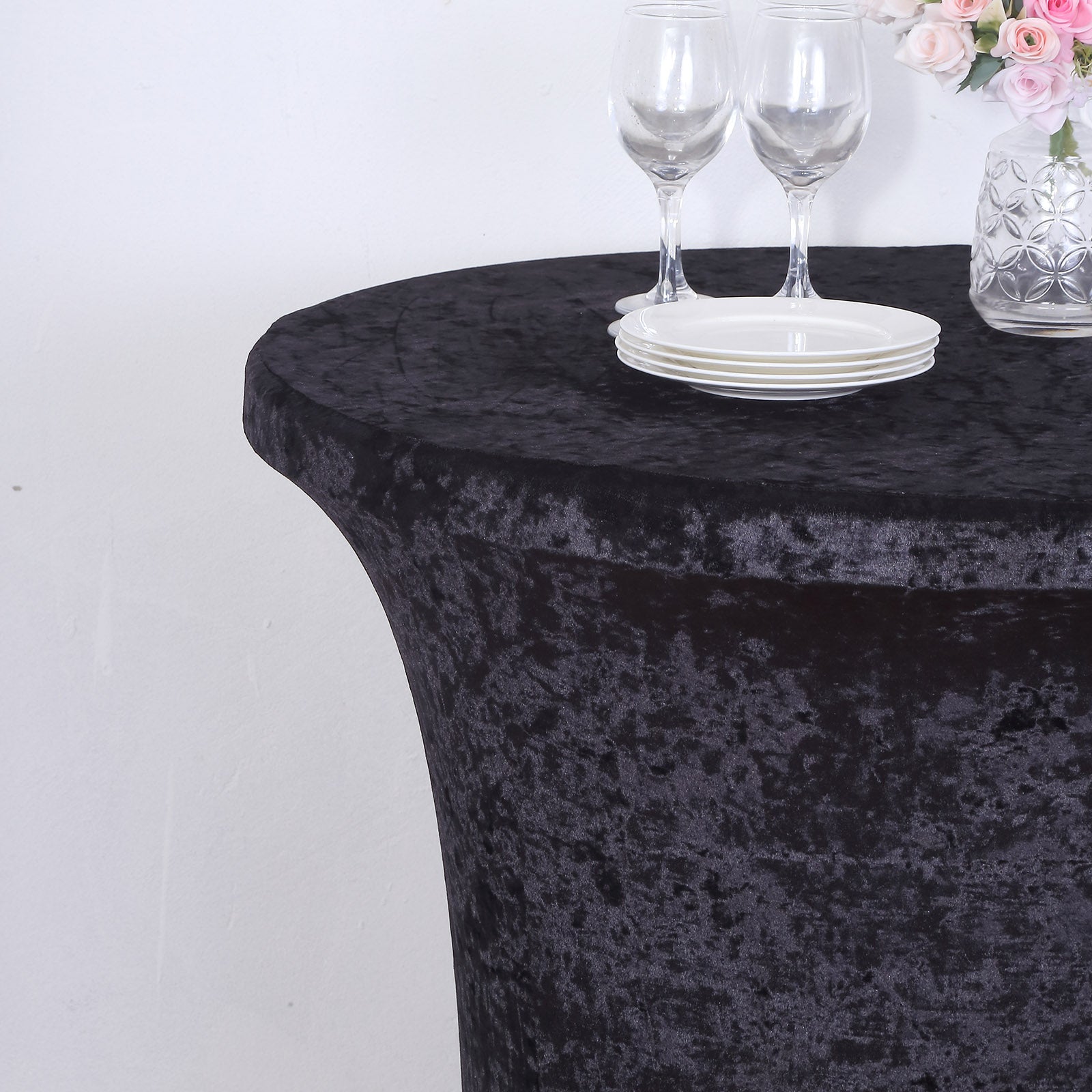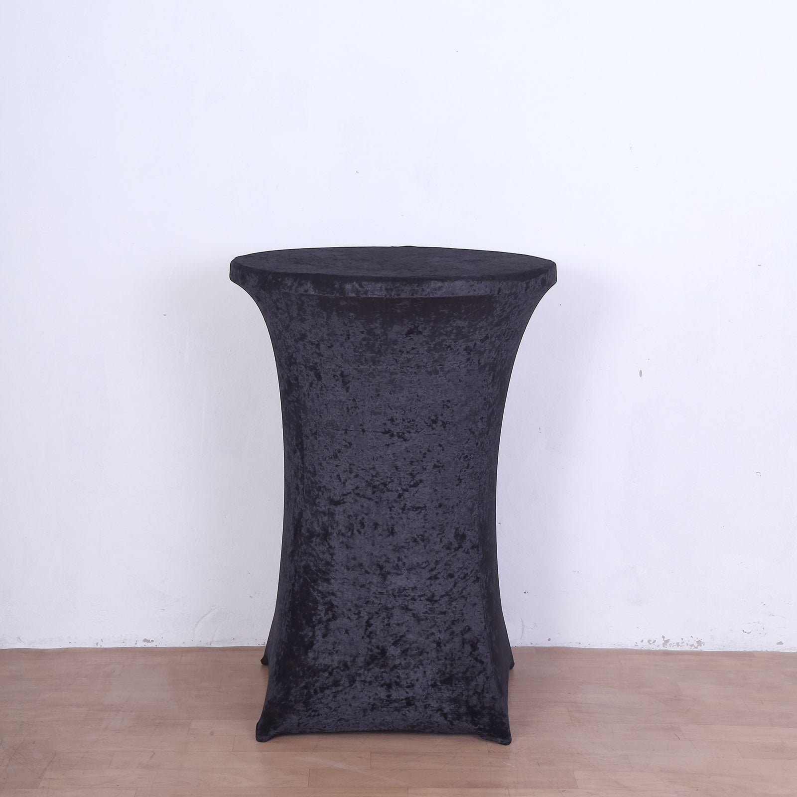 Crushed Velvet Spandex 30" Round Cocktail Table Cover Black Smooth Highboy Tablecloth