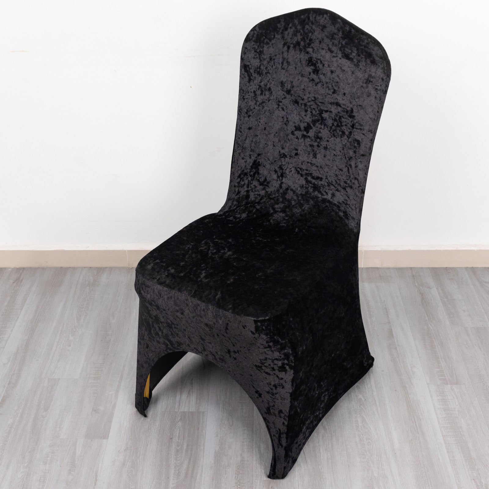 Experience the luxurious comfort of our Black Crushed Velvet Spandex Stretch Chair Cover. This cover is designed to provide a soft, plush feel that enhances the seating experience. The premium crushed velvet fabric feels exquisite against the skin, making it perfect for long events.