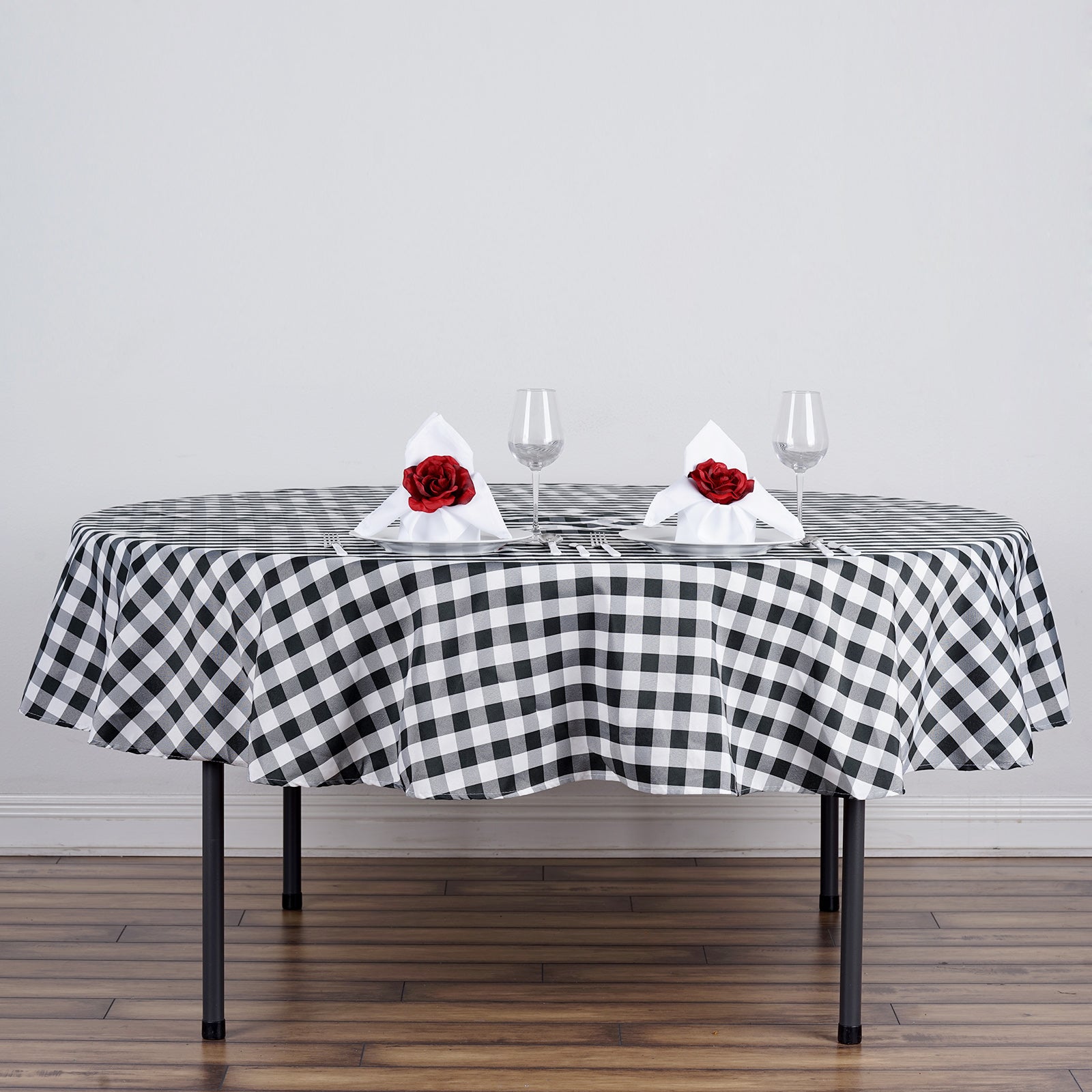 90" | White/Black Buffalo Plaid Round Tablecloth, Gingham Polyester Checkered Tablecloth
