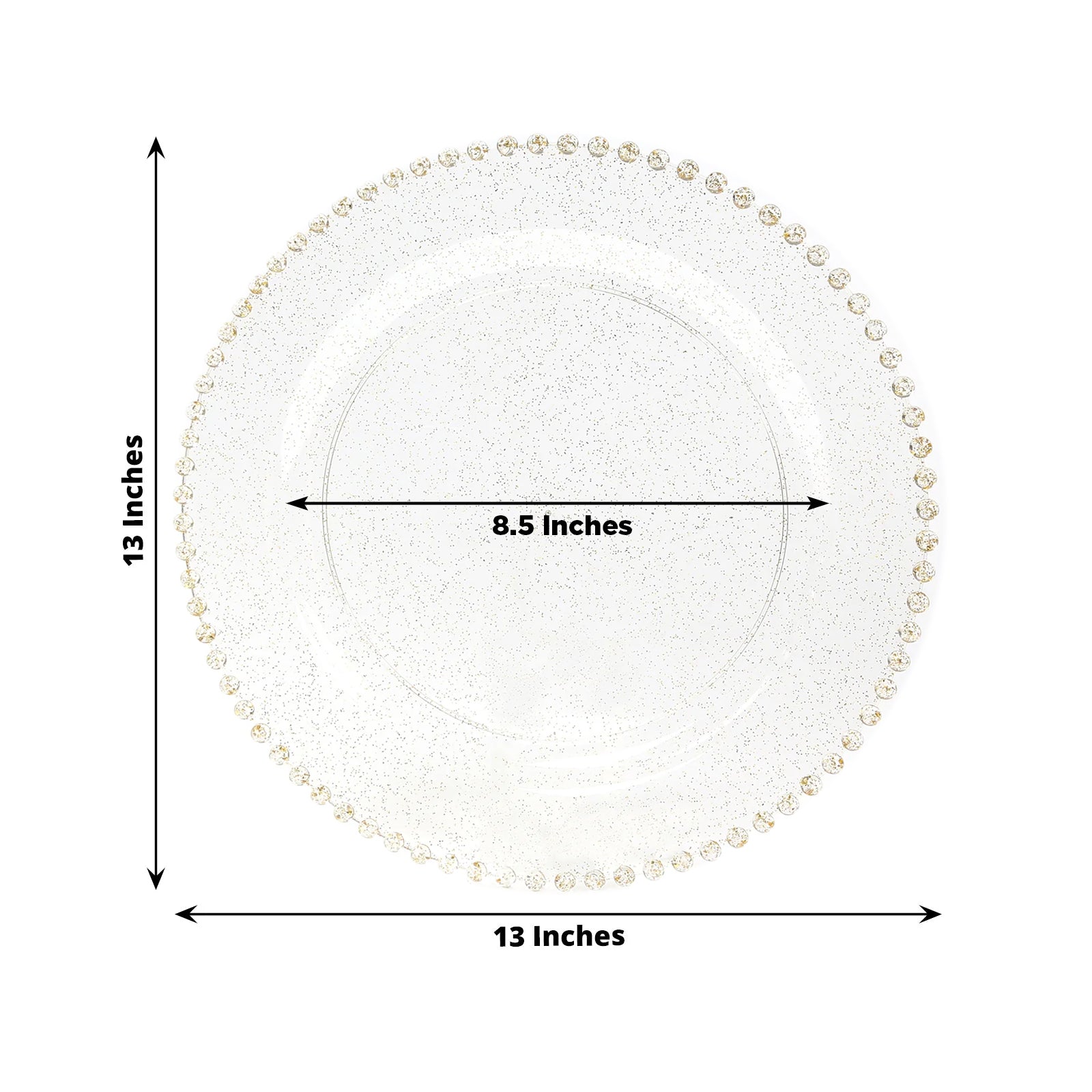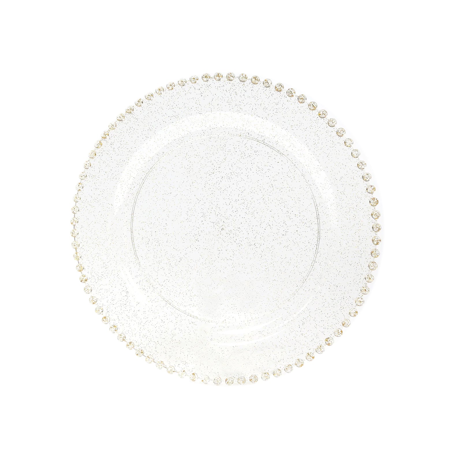 10-Pack Clear Charger Plates with Gold Glitter & Beaded Rim
