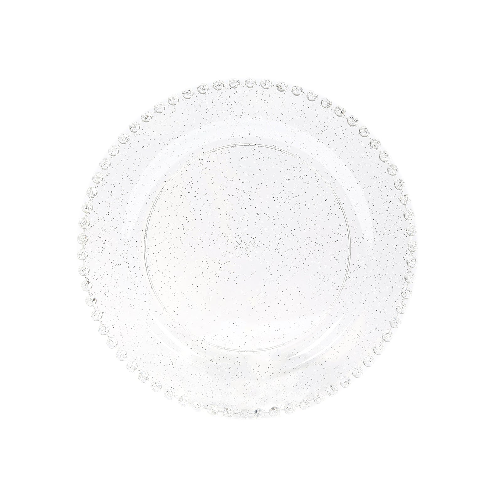 10-Pack Clear Charger Plates with Silver Glitter & Beaded Rim