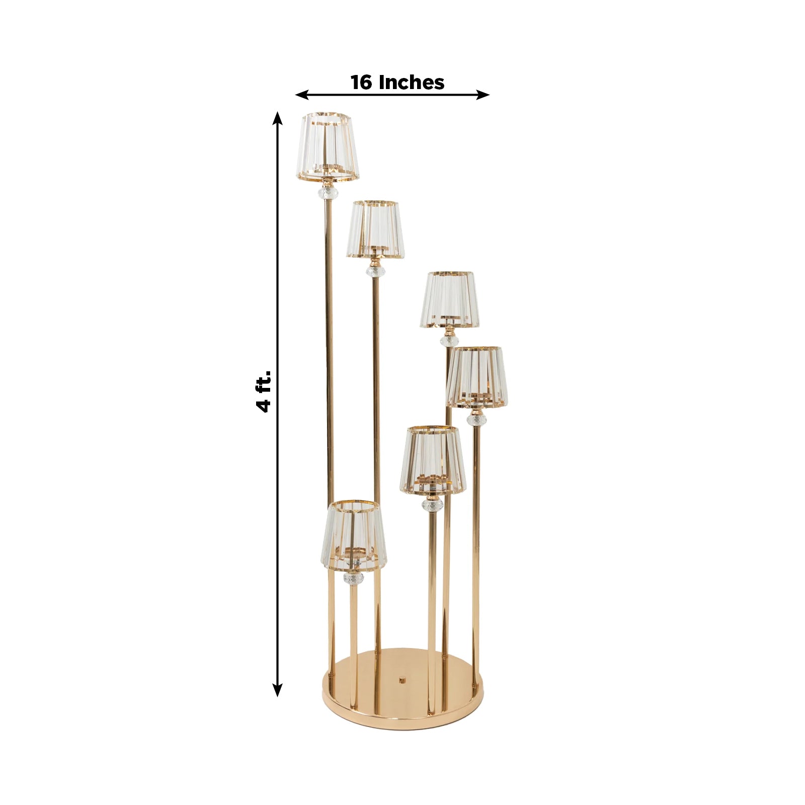 Crystal Pendant 6-Arm Cluster Candelabra Candle Holder, 4ft Gold Metal Candle Stand with Round Base