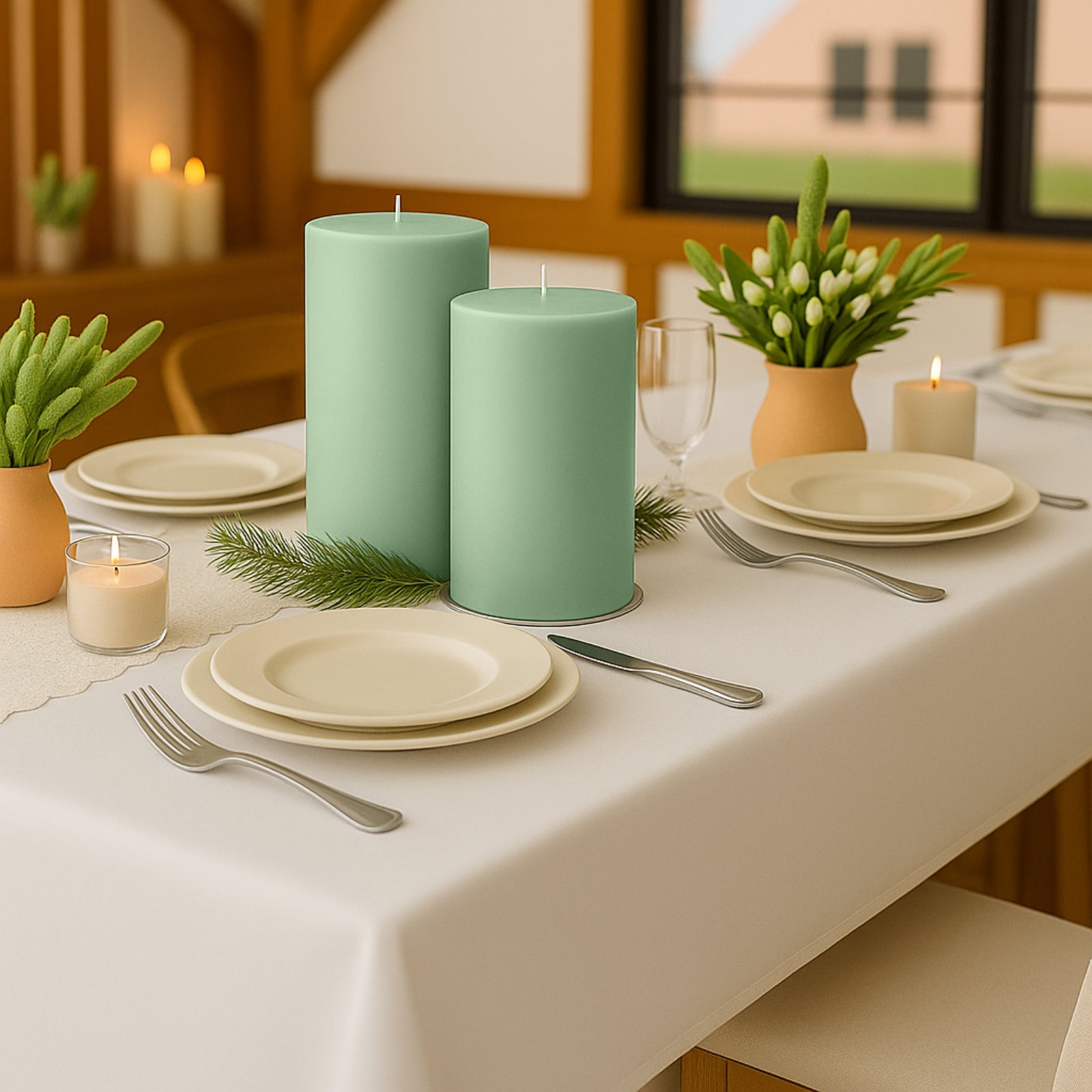 To softly spotlight grazing displays, position candles behind risers so the glow grazes textures. Pair sage with ivory and blush for airy palettes or with terracotta and brass for earthy warmth. The color adapts across seasons and styles with minimal effort.