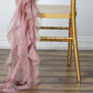 The Dusty Rose Chiffon Curly Chair Sash features a luxurious chiffon texture. This fabric is soft and delicate, creating a stunning visual appeal. The elegant drape adds sophistication to any chair, making it an ideal choice for weddings and special events.
