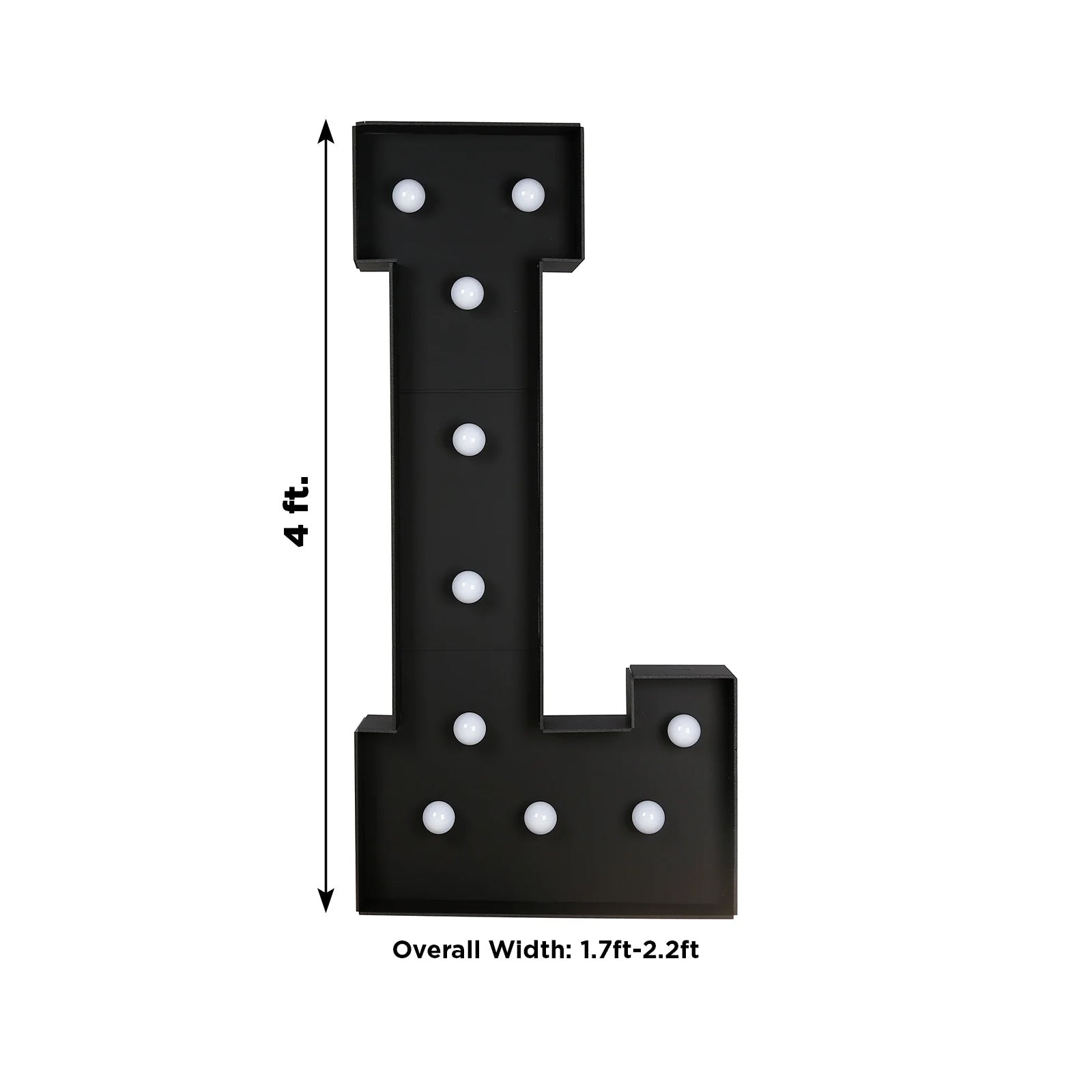 Giant LED Marquee Light Up Letter "L", Black 4ft Pre-Cut Foam Board with 10 Warm White Battery Operated LEDs, Glue Gun and Sticks