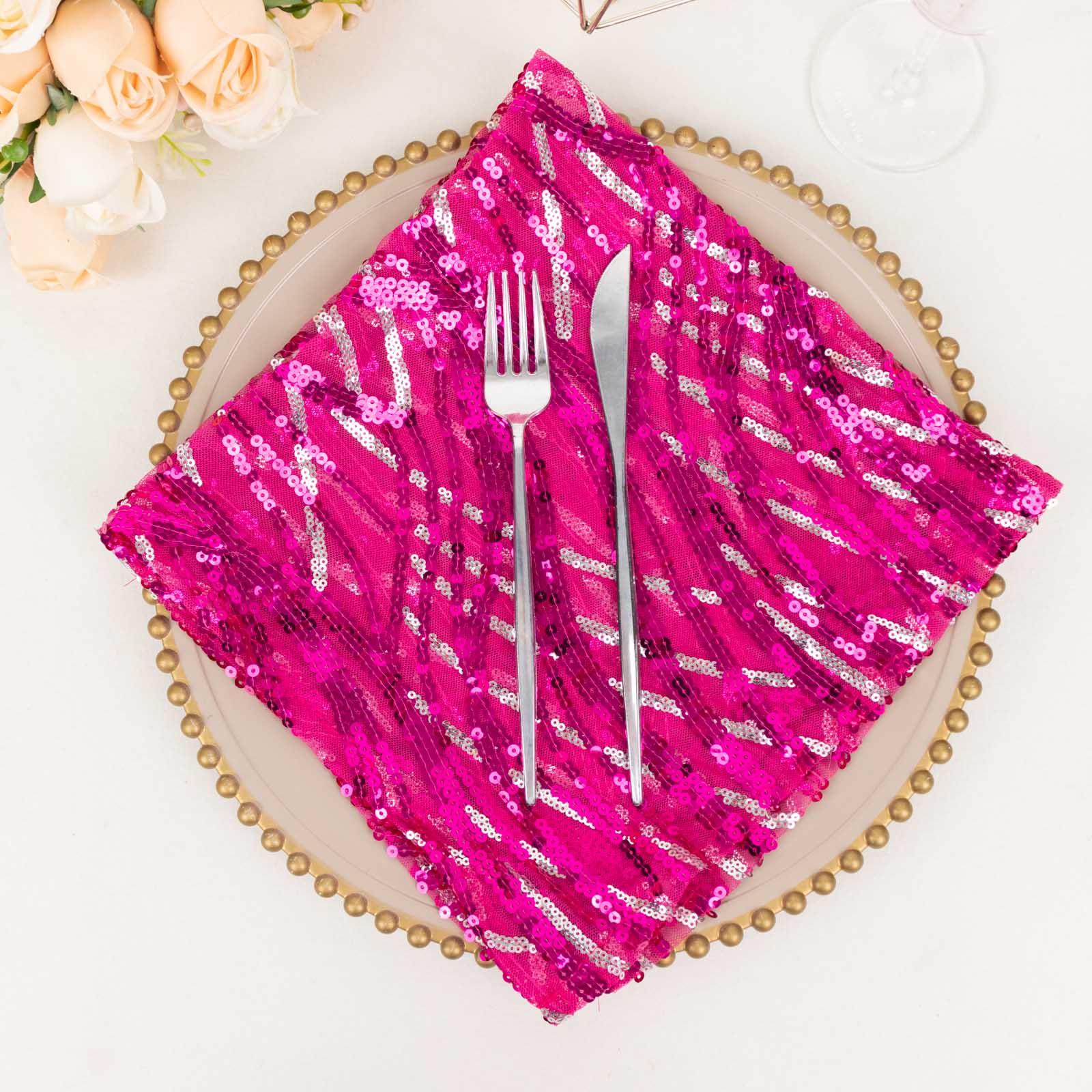 Sequin napkins like our Fuchsia Silver Wave option are perfect for adding sparkle to your table decor. They instantly elevate the ambiance of any event. The shimmering sequins reflect light, creating a dazzling effect that enhances your dining experience.