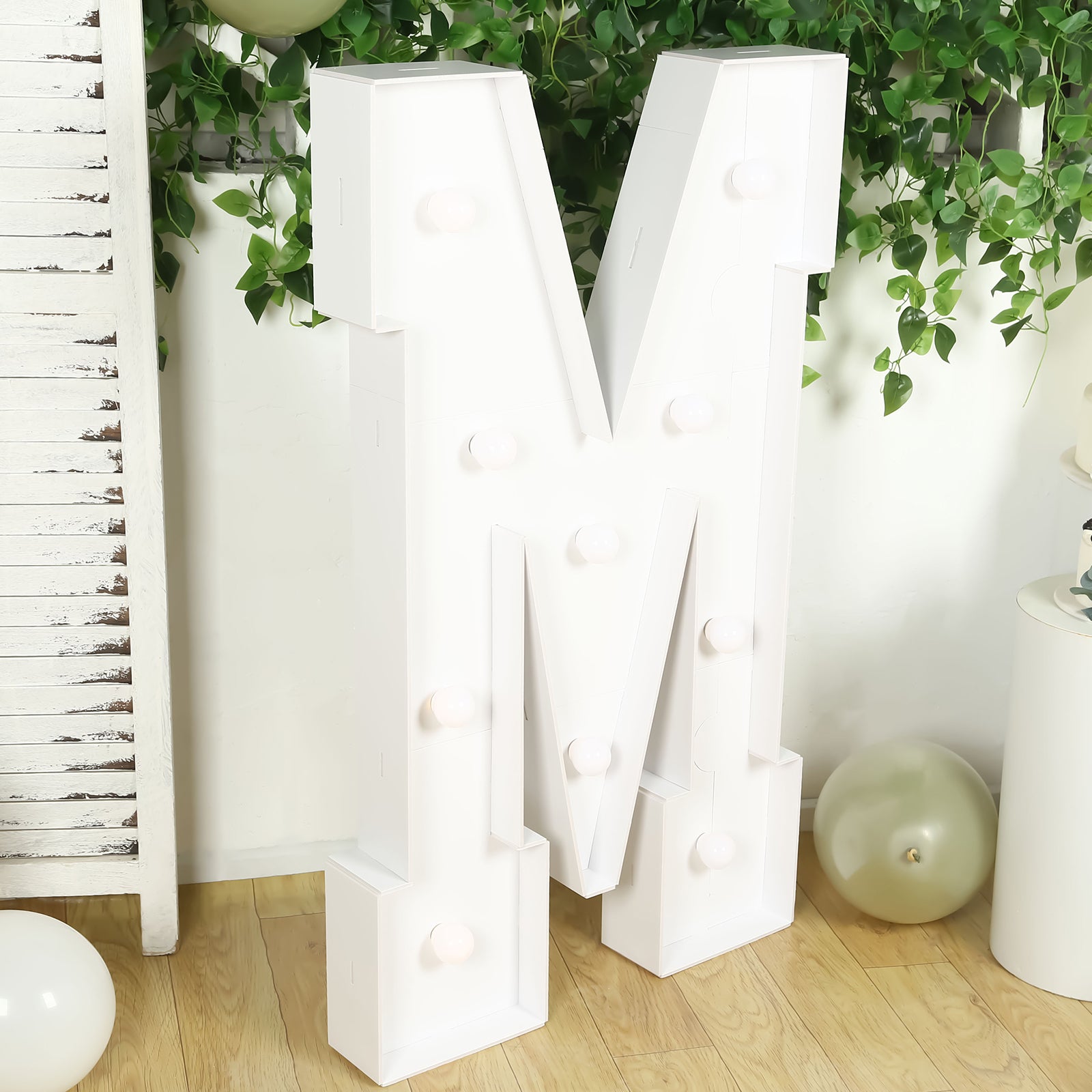 Giant LED Marquee Light Up Letter "M", White 4ft Pre-Cut Foam Board with 10 Warm White Battery Operated LEDs, Glue Gun and Sticks