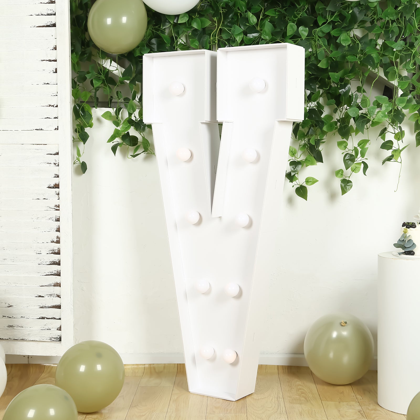 Giant LED Marquee Light Up Letter "V", White 4ft Pre-Cut Foam Board with 10 Warm White Battery Operated LEDs, Glue Gun and Sticks
