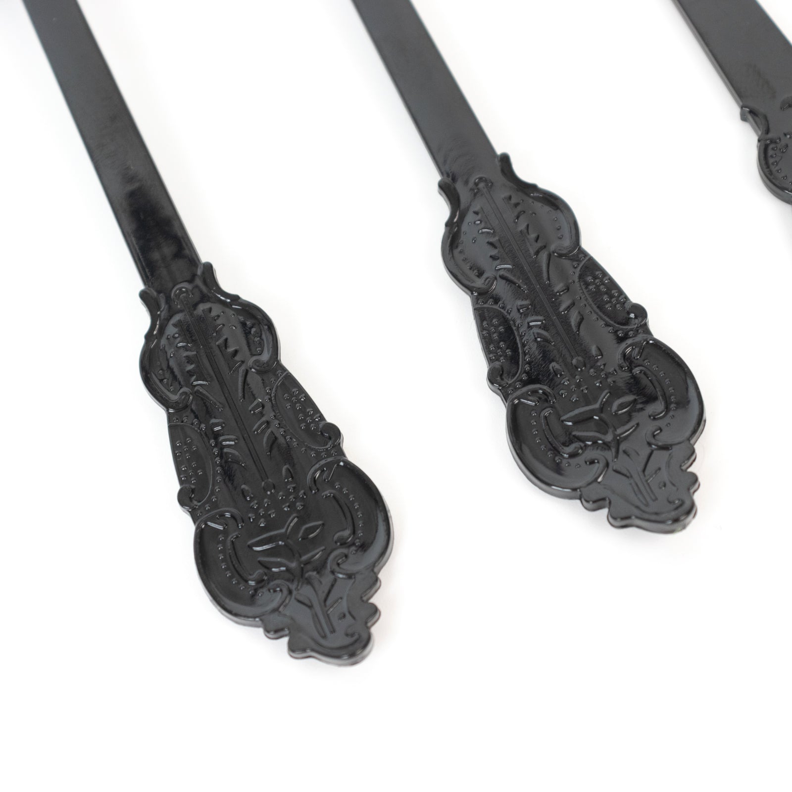 Black Baroque Style Plastic Silverware Set – 72 Pcs