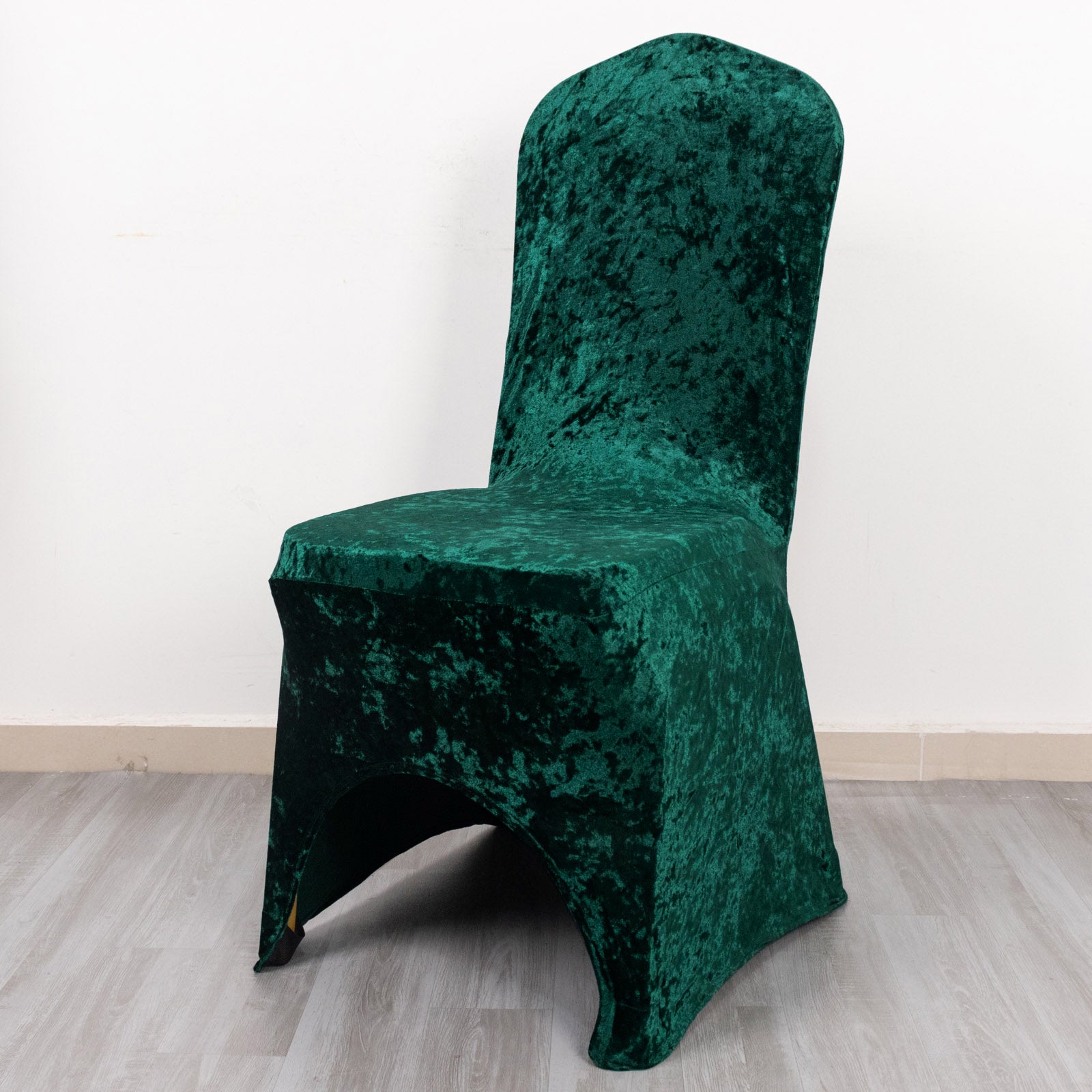 Hunter Emerald Green Crushed Velvet Spandex Stretch Wedding Chair Cover With Foot Pockets, Fitted Banquet Chair Cover - 190 GSM