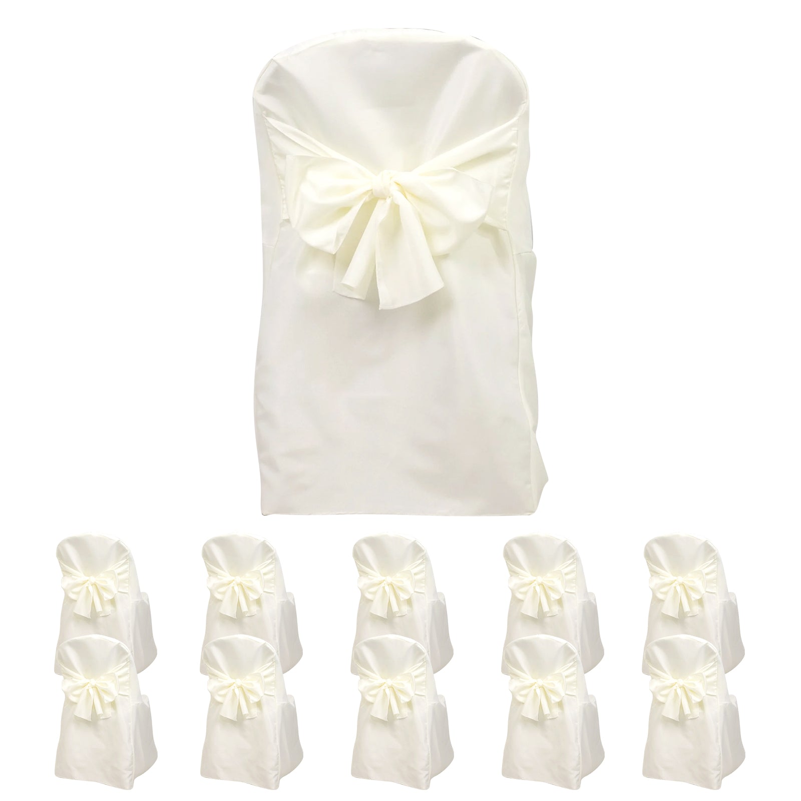 10-Pack Polyester Slip-On Folding Chair Covers with Attached Sashes – Ivory Durable Reusable Covers for Wedding & Event Decor