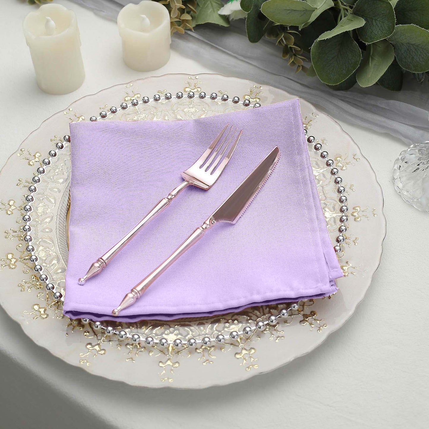 With their luxurious feel, these napkins create a sophisticated dining experience. Impress your guests at weddings, receptions, and special gatherings. Elevate your decor with the rich lavender lilac hue that radiates elegance.