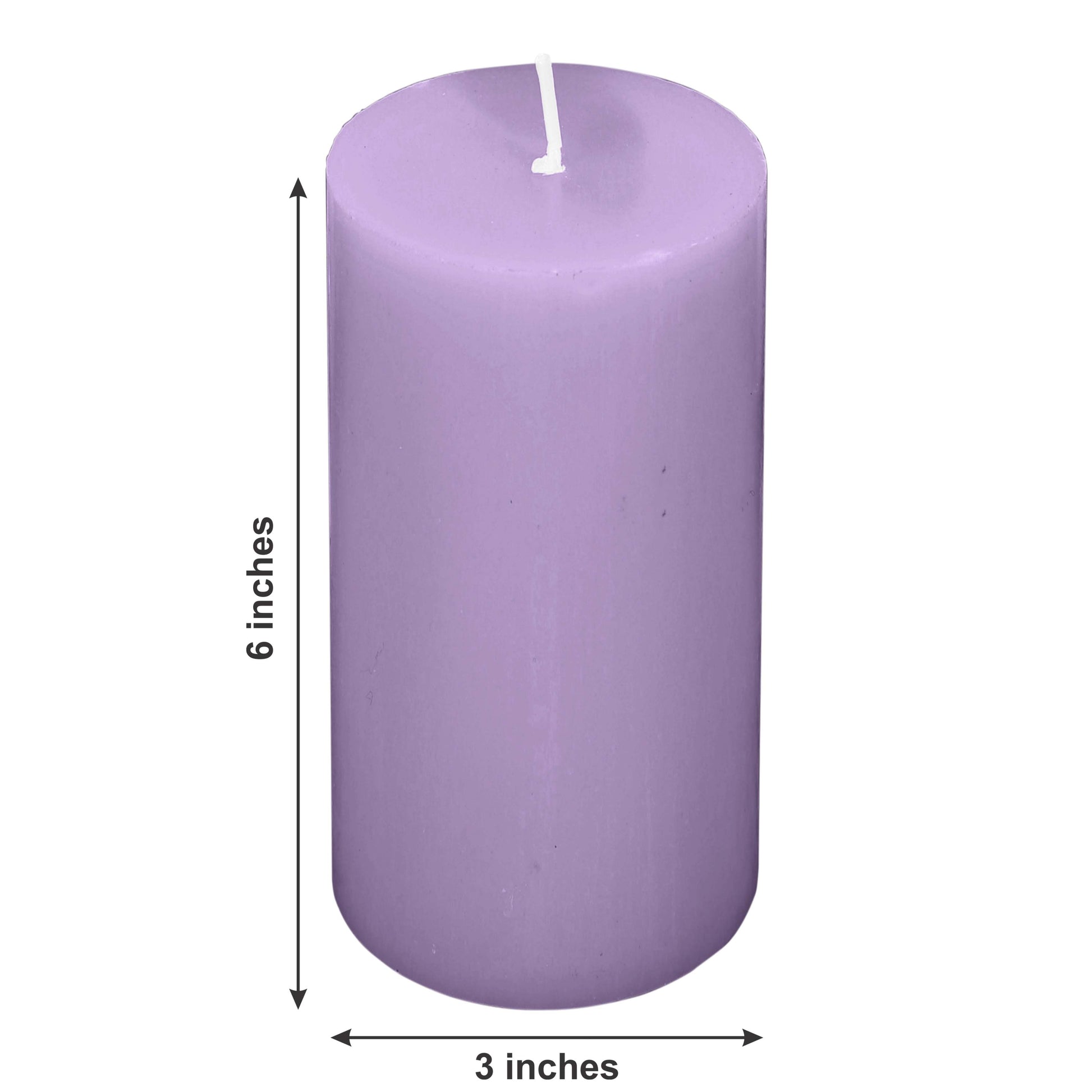 6-Pack Unscented Dripless Pillar Candles – 3"x6" Lavender Lilac Paraffin Wax with Smokeless Cotton Wicks, Clean & Long-Lasting 60-Hour Burn