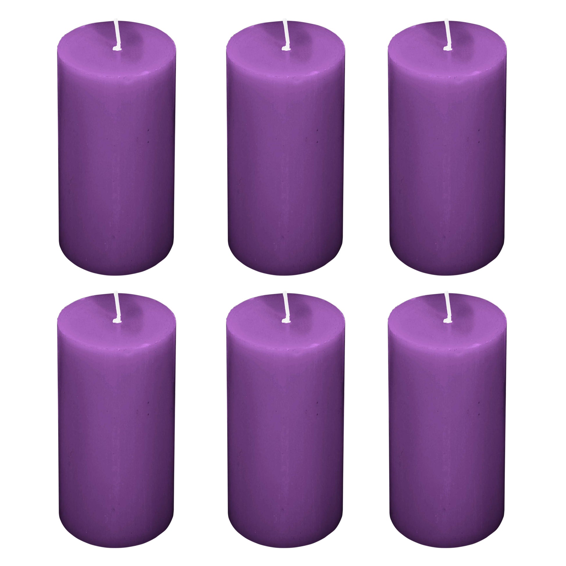 Enrich your décor with this 6-pack of 3"x6" unscented dripless Purple pillar candles from TCFLinen. The premium paraffin wax and cotton wicks produce a clean, smokeless burn, while the dripless design protects your Table Linens. Purple’s saturated tone complements modern schemes with black and gold, or garden-forward palettes with lush greenery and soft florals.