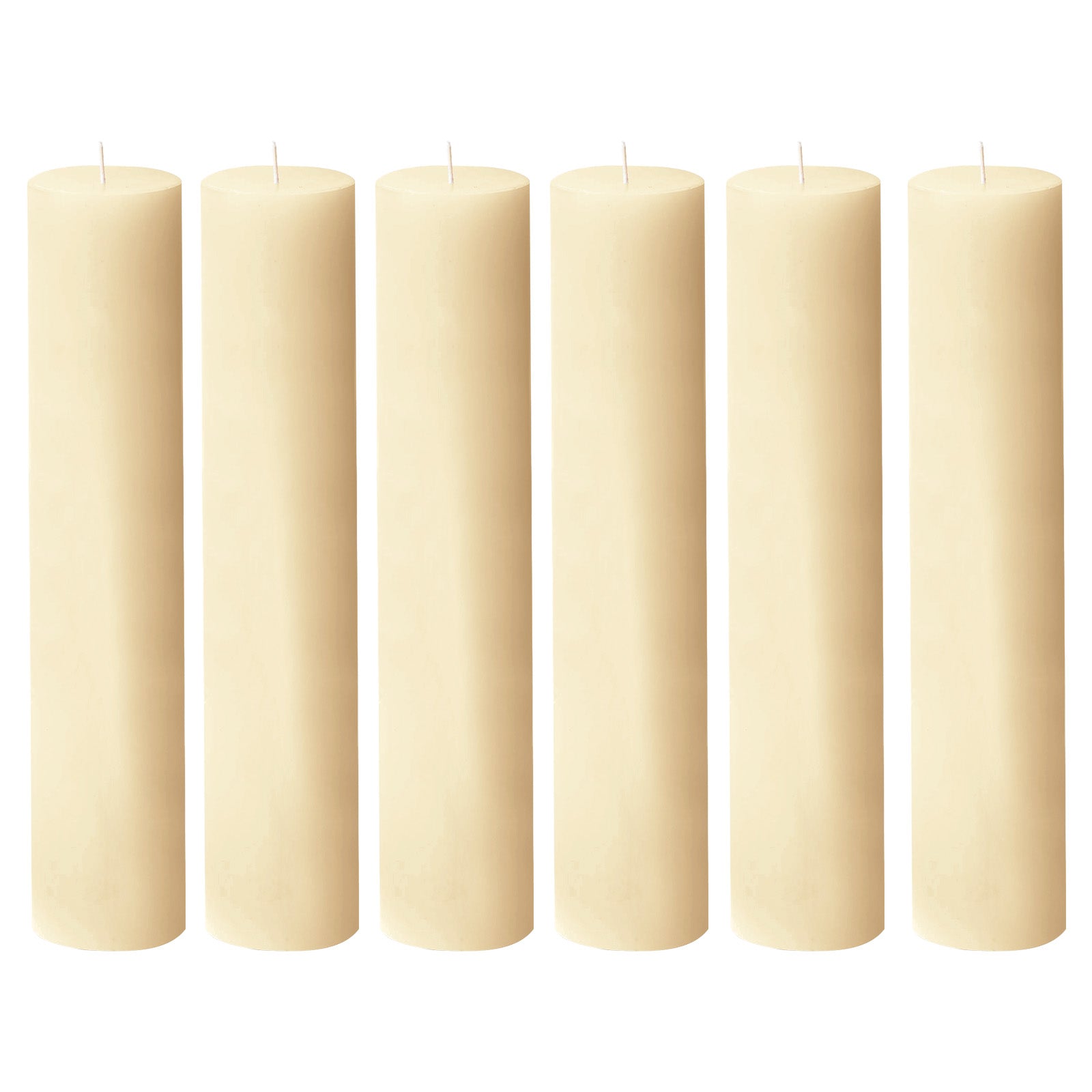 Illuminate your space with the timeless beauty of this 6-pack of Unscented Ivory Pillar Candles from TCFLinen. Each candle is crafted from high-quality paraffin wax with a cotton wick, ensuring a clean, smokeless, and drip-free burn. Standing 12 inches tall and 3 inches wide, they bring classic style to weddings, dinner parties, and home gatherings. Their smooth finish and steady flame protect your Table Linens while adding a warm, inviting glow to every setting. Ideal for event planners, caterers, and home decorators, these tall candles provide both beauty and reliability.